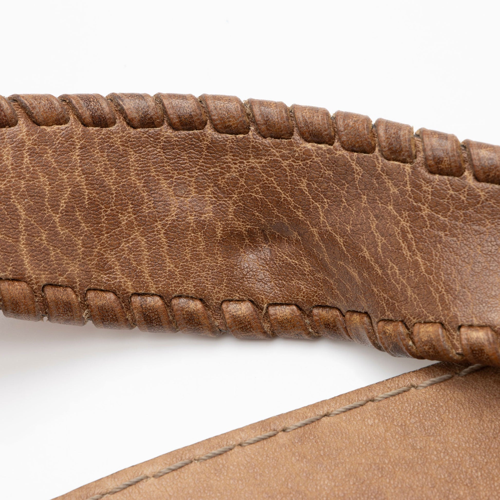 Condition Notes: Light scuffs and wear to exterior bottom corners. Light creasing and scuffs throughout exterior. Light darkening throughout handle. Surface scratches and light tarnishing to hardware. Light marks and darkening throughout interior.