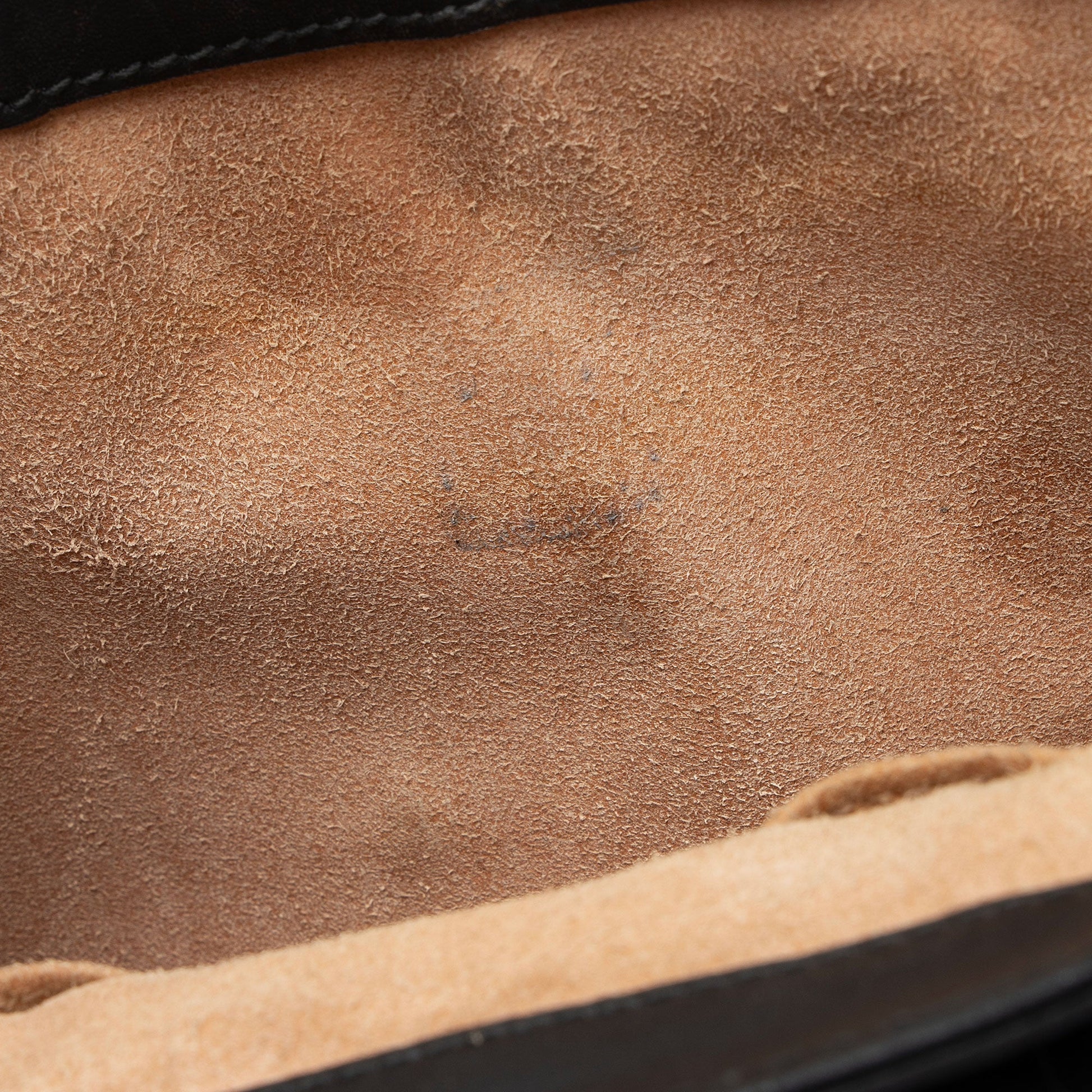 Condition Notes: Moderate creasing throughout exterior causing loss of structure. Light scuffs and marks throughout exterior. Visible creasing throughout shoulder strap. Visible surface scratches and tarnishing to hardware. Scuffs and marks throughout interior flap. Marks and darkening throughout interior.