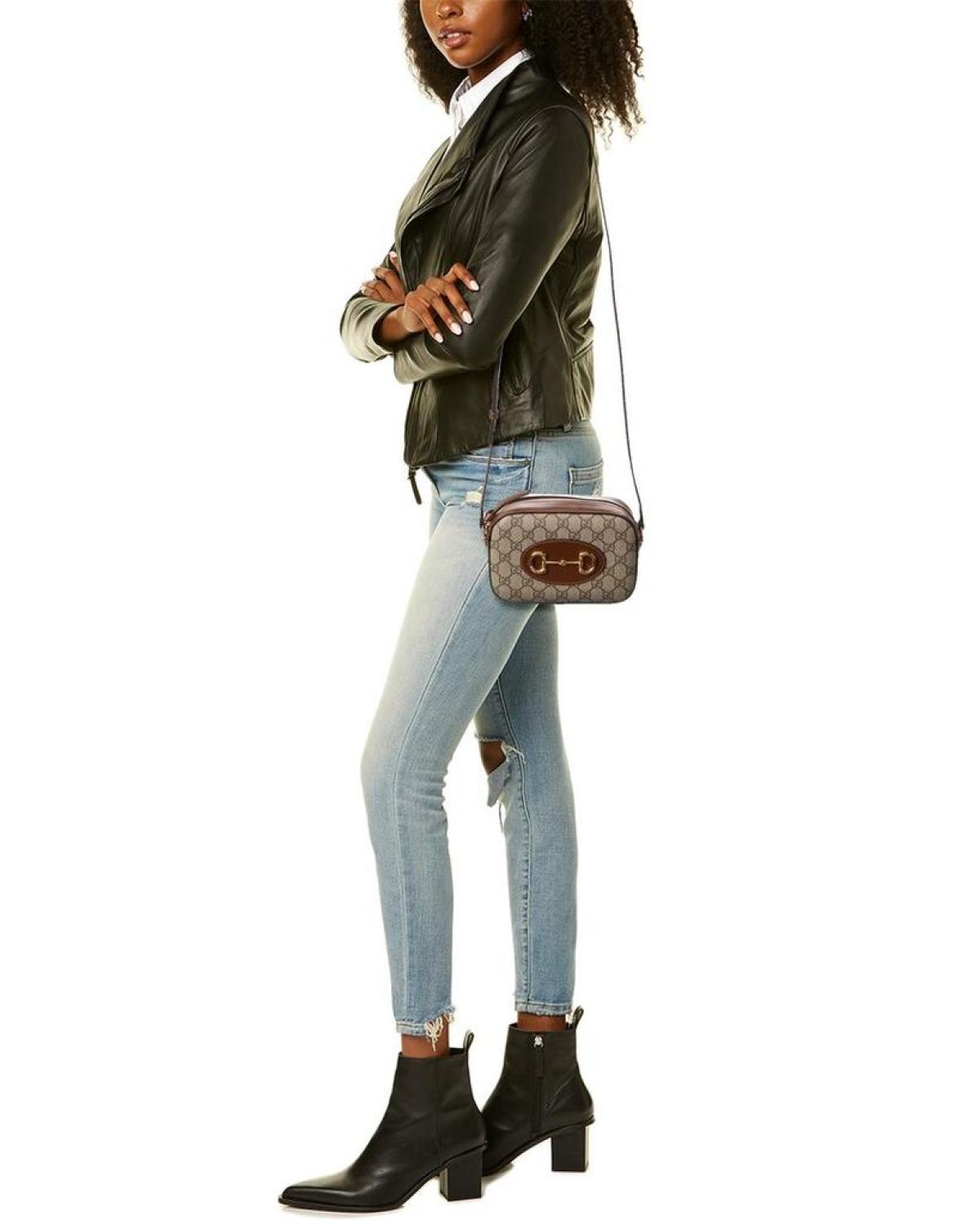 Introducing the Gucci Horsebit 1955 Small GG Supreme Canvas & Leather Shoulder Bag, a luxurious addition to your collection. Crafted with precision in Italy, this handbag perfectly embodies the eclectic and coveted essence of the Gucci brand.The exterior of the bag features the iconic beige and ebony GG Supreme canvas, elegantly complemented by smooth leather accents and light fine gold hardware. The standout horsebit accent adds a touch of sophistication to the overall design. Additionally, the bag is equipped with a convenient exterior pocket for quick access to your essentials.Inside, the bag boasts a luxurious microfiber lining and a practical wall pocket for easy organization. With dimensions of 8 inches wide, 5 inches high, and 2.5 inches deep, it offers just the right amount of space for your daily essentials. The adjustable shoulder strap with a 23-inch drop allows for comfortable crossbody or shoulder wear, catering to your personal style.Securing your belongings is made effortless with the reliable zipper closure. Please note that all measurements were taken by hand, and slight variations may occur, adding a unique touch to each individual bag.Rest assured, this Gucci Horsebit 1955 Small GG Supreme Canvas & Leather Shoulder Bag is genuine. While we occasionally source products from trusted independent suppliers, we stand by the ity and quality of every item offered on our site.Elevate your outfit with this stunning Gucci shoulder bag, combining Italian luxury and redefined style for the modern woman.