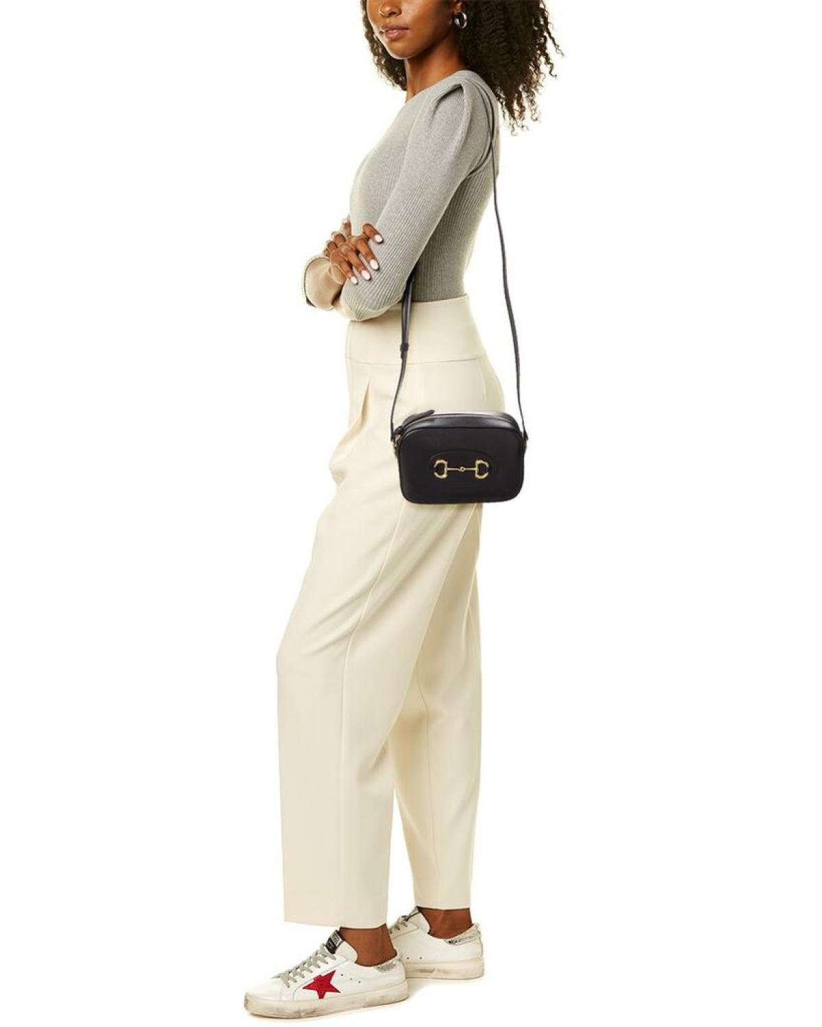 Introducing the Gucci Horsebit 1955 Small Leather Shoulder Bag in sleek black, an epitome of luxury and timeless elegance. This iconic creation by Gucci effortlessly combines sophistication with functionality, making it a must-have accessory for the modern woman. Crafted with meticulous precision and attention to detail, this shoulder bag showcases Gucci's renowned craftsmanship. The impeccable quality of the supple leather in its construction ensures durability while exuding a refined allure. The versatile size of this bag allows for convenient everyday use, without compromising on style.Featuring the distinctive Gucci Horsebit hardware, this bag pays homage to the brand's rich heritage. This signature element adds a touch of glamorous charm, instantly capturing attention wherever you go. The gold-toned hardware perfectly complements the sleek black leather, creating a harmonious blend of luxury and sophistication.The Gucci Horsebit 1955 Small Leather Shoulder Bag offers ample storage space within its compact dimensions. Designed with practicality in mind, it features a spacious main compartment along with an internal zip pocket and a dedicated slip pocket for organizing your essentials with ease. The adjustable shoulder strap allows for comfortable cross-body or over-the-shoulder wear, adding versatility to your style.Whether you're attending a soirée, heading to the office, or enjoying a leisurely day out, this Gucci shoulder bag effortlessly elevates any ensemble. Its timeless appeal and subtle branding make it a statement piece that transcends trends, ensuring your investment stands the test of time.Indulge in the world of luxury with the Gucci Horsebit 1955 Small Leather Shoulder Bag. Elevate your style and embrace the impeccable craftsmanship that defines the Gucci brand, leaving a lasting impression wherever you carry this exquisite accessory.Note: Shipping and returns information can be found on our website or by contacting our customer service.
