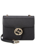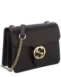 Introducing the Gucci Interlocking G Small Leather Shoulder Bag, a coveted addition to any woman's handbag collection. Made in Italy, this exquisite shoulder bag showcases Gucci's exceptional craftsmanship and iconic design elements.Crafted with black leather and adorned with light fine gold hardware, the bag features a prominent Interlocking G logo, signifying the brand's timeless appeal. Its compact size measures 8 inches wide, 6 inches high, and 3 inches deep, making it perfect for carrying your everyday essentials.The interior of this shoulder bag boasts a luxurious canvas lining and convenient interior pockets, allowing for organized storage of your belongings. The shoulder strap drops 21 inches, providing comfortable and versatile wear. The fold-over flap is secured with a turnlock closure, ensuring both style and functionality.Please note that all measurements were taken by hand and are approximate; slight variations may occur. Rest assured, our products are genuine. While we may occasionally source merchandise from trusted independent suppliers, we the ity of every product sold on our site.Elevate your style with the Gucci Interlocking G Small Leather Shoulder Bag. Order now and experience Italian luxury redefined.