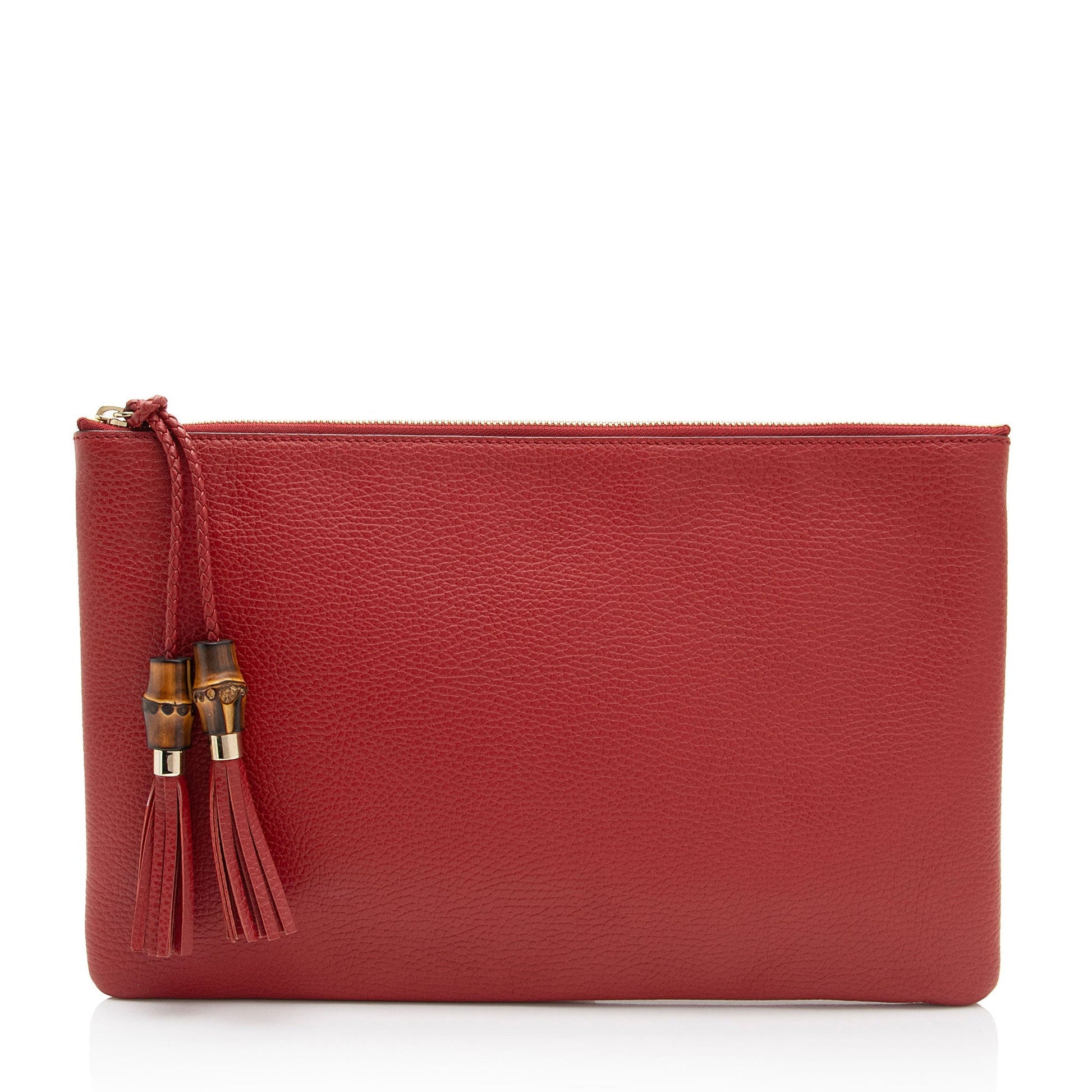 Gucci Leather Bamboo Tassel Zip Clutch (SHF-jOVRgR)