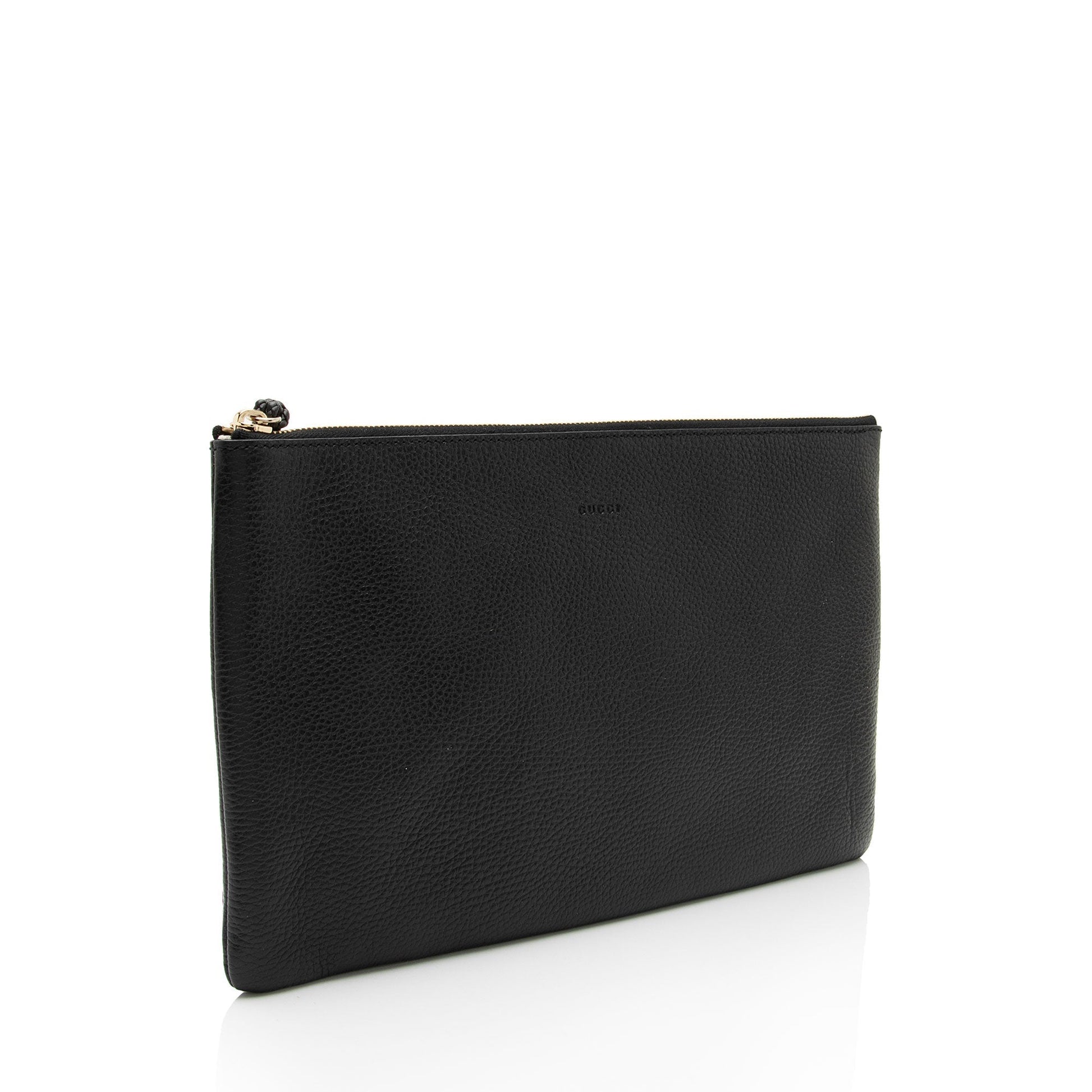 Condition Notes: Minor surface scratches to hardware. Please note: This clutch was an outlet item. Marked by a circular G stamp on the interior label.