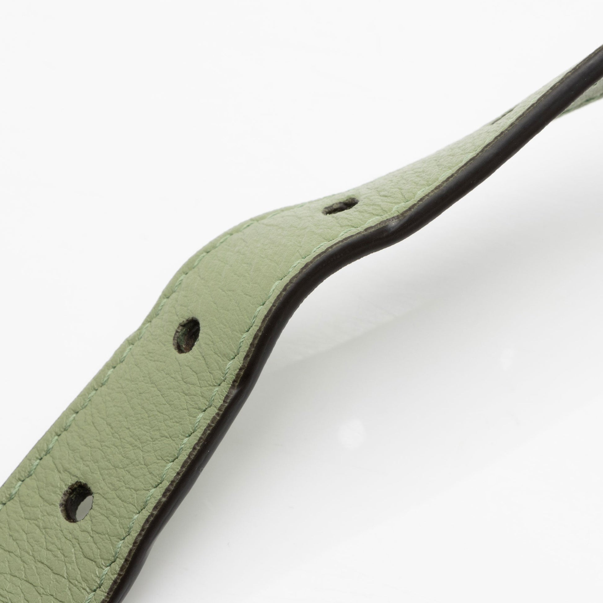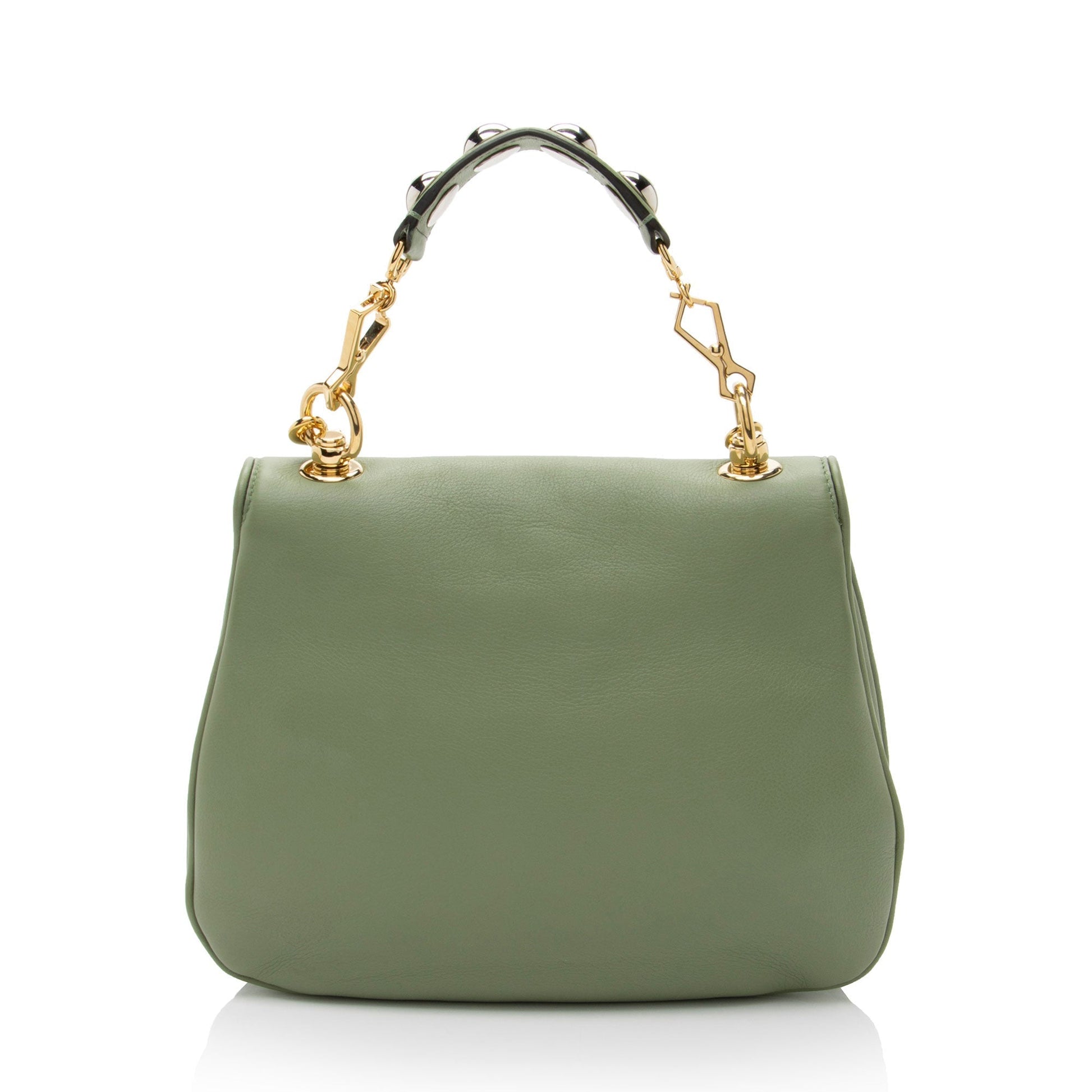 Condition Notes: Minor scuffs throughout exterior. Light creasing throughout handle and leather shoulder strap. Surface scratches to hardware. Imprints to interior front leather from hardware. Minor wear throughout interior.