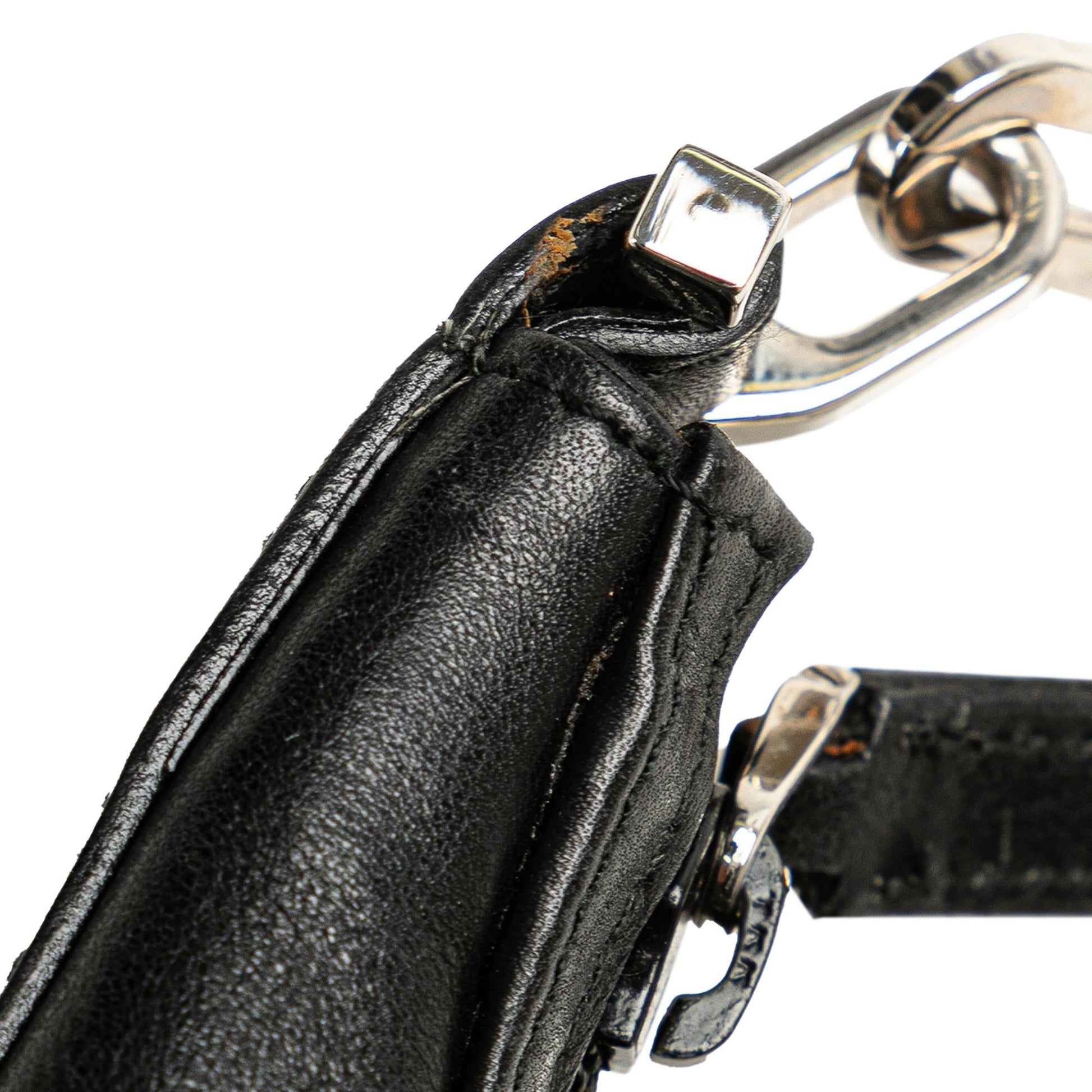 Condition Notes: Exterior Front Worn. Exterior Back Worn. Exterior Bottom Worn. Exterior Handle Worn. Exterior Handle stained with Other. Exterior Corners Worn. Exterior Side Worn. Interior Lining stained with Other. Interior Pocket stained with Other. Embellishment Scratched. Practical Attachment Rusty/Tarnished, Scratched. Zipper Scratched.