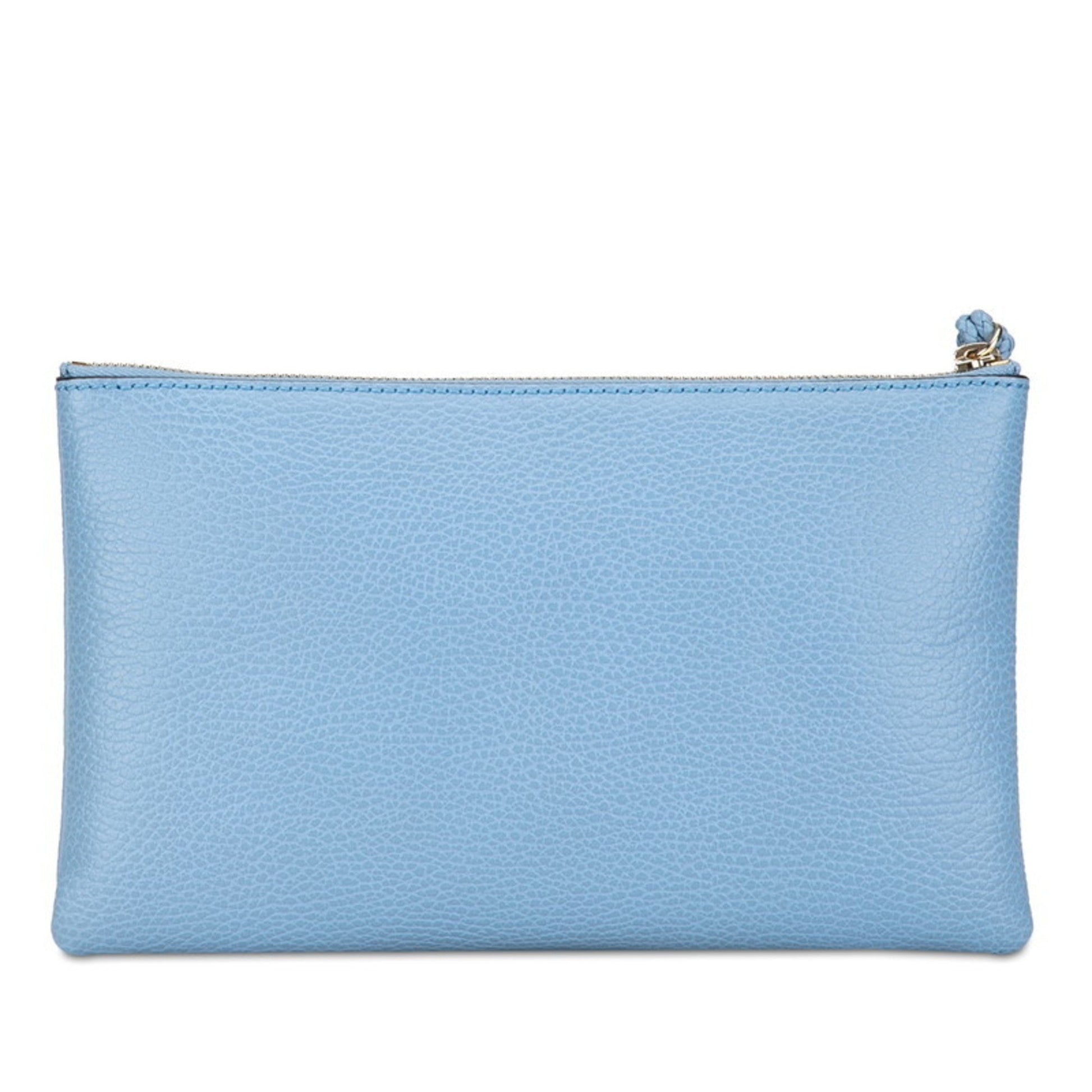 Brand - Gucci, Color - Light blue, Material - Leather, Dimensions - 15.5cm x 26cm x 1.5cm / 6.1'' x 10.23'' x 0.59'', Condition - Rank A. Rank A New - A few traces of usage, some scratches / dirt can be seen but overall in very good condition. Before purchasing, please refer to the images for the exact condition of the item. Before purchasing, please refer to the images of the accessories included with the item. Bag Common Damage Scratch - Insignificant Size - One Size