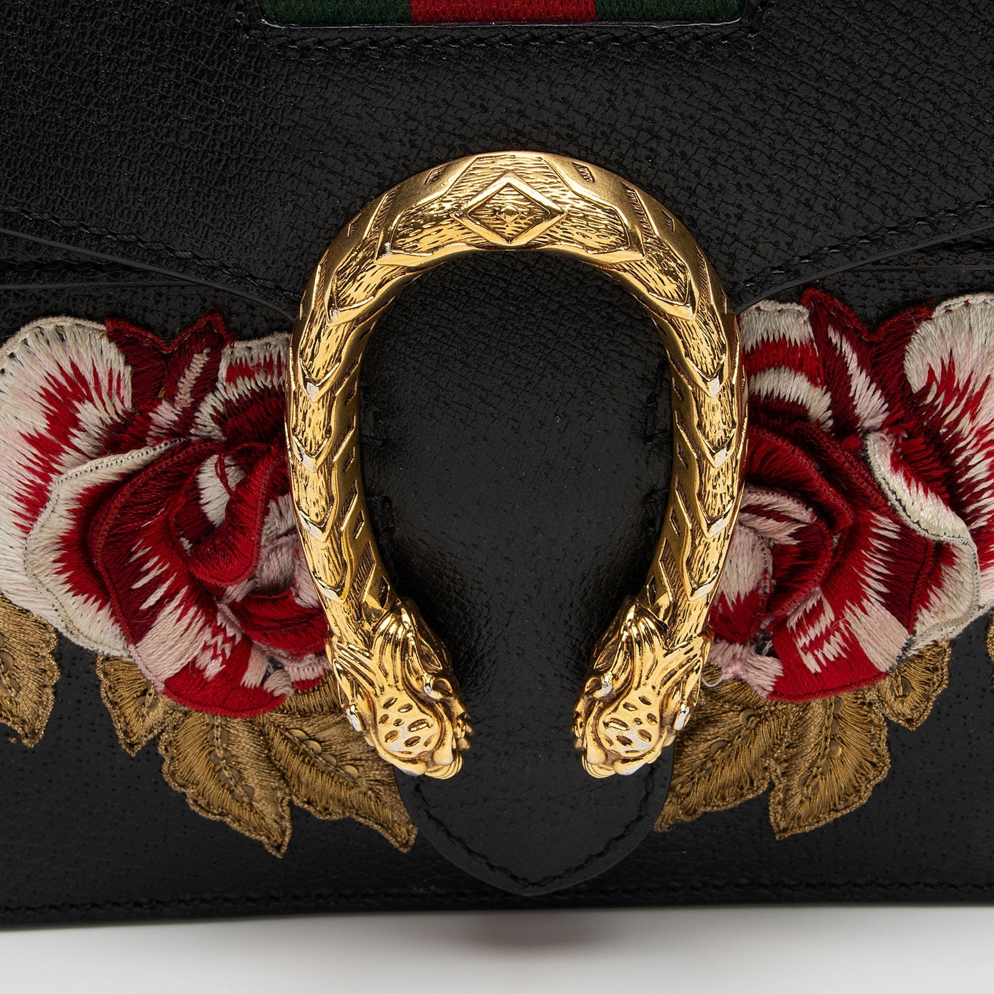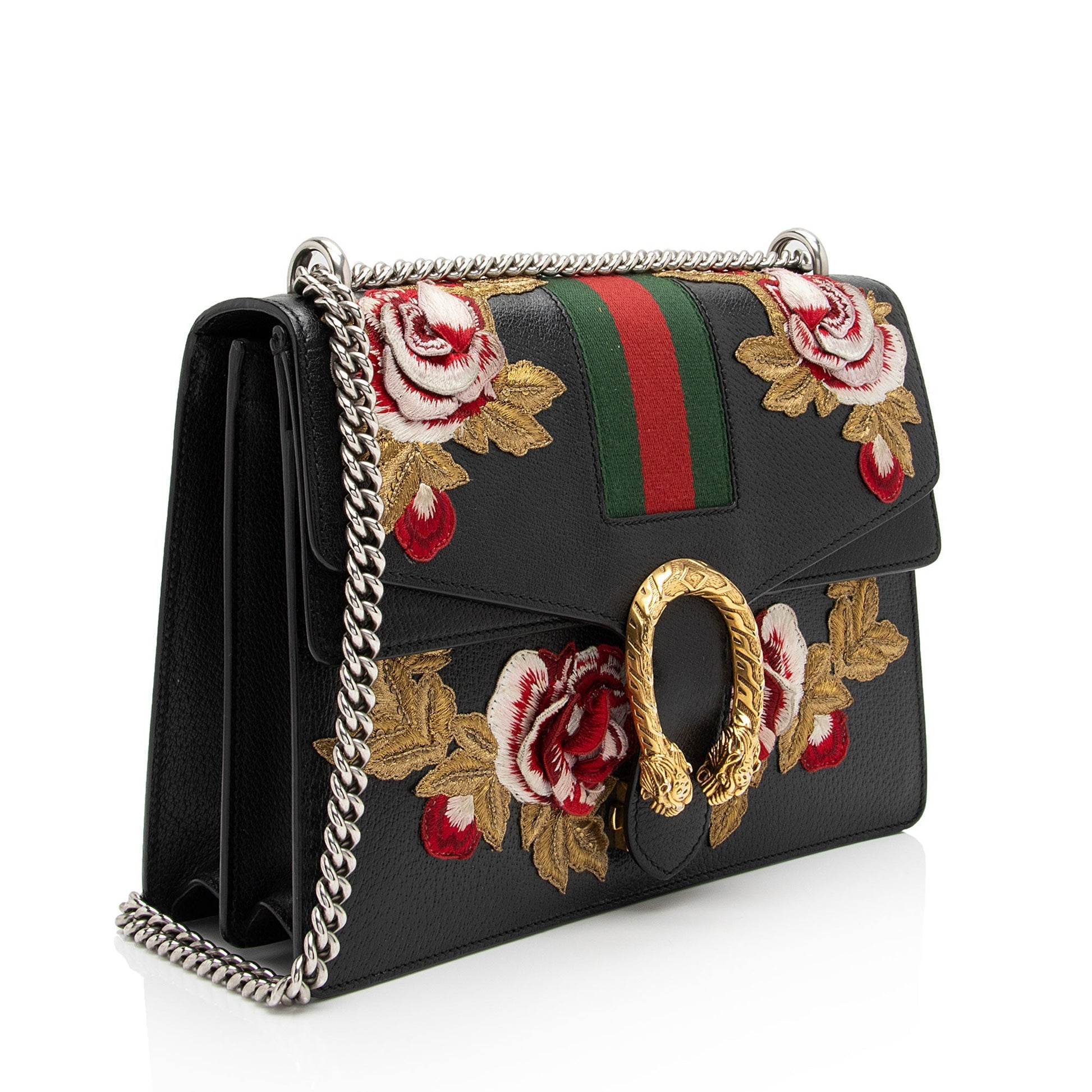 Gucci Leather Embroidered Rose Dionysus Medium Shoulder Bag (SHF-sxhk6S)