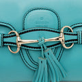 Condition Notes: Light scuffs throughout exterior. Curling and light fraying to exterior tassels. Imprint to leather on shoulder strap. Light surface scratches to hardware. Light creasing throughout interior flap. Light creasing and scuffs throughout interior.