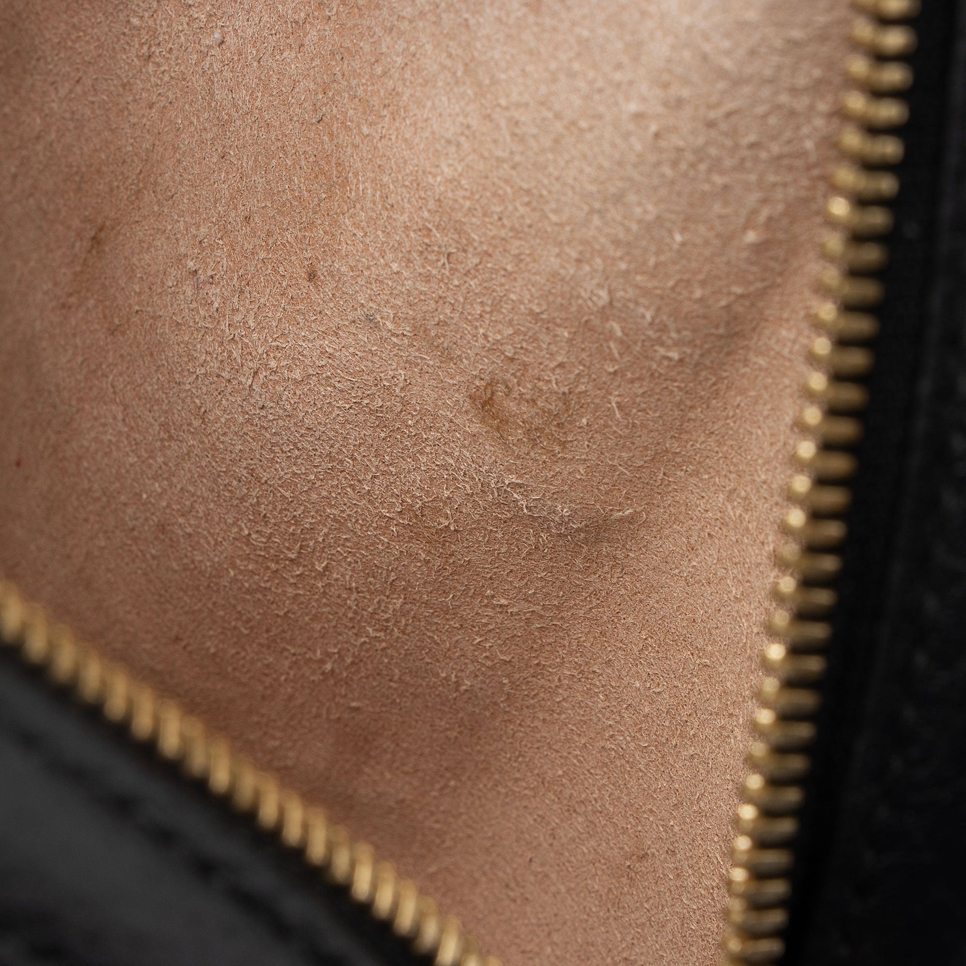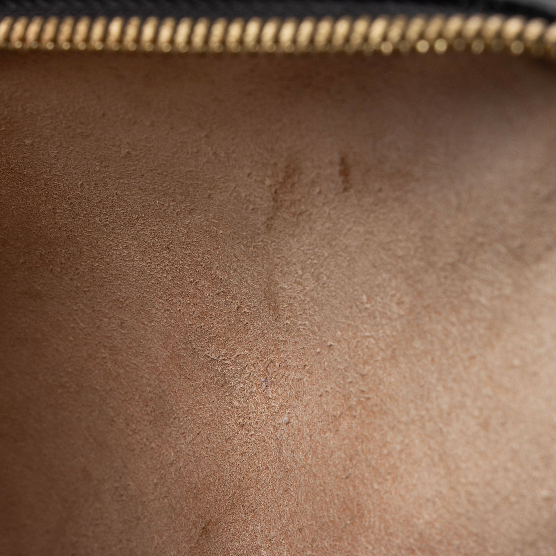 Condition Notes: Marks and scuffs throughout exterior. Light wear throughout exterior casing. Visible surface scratches and tarnishing to hardware. Marks and discoloration throughout interior. Strong perfume odor.