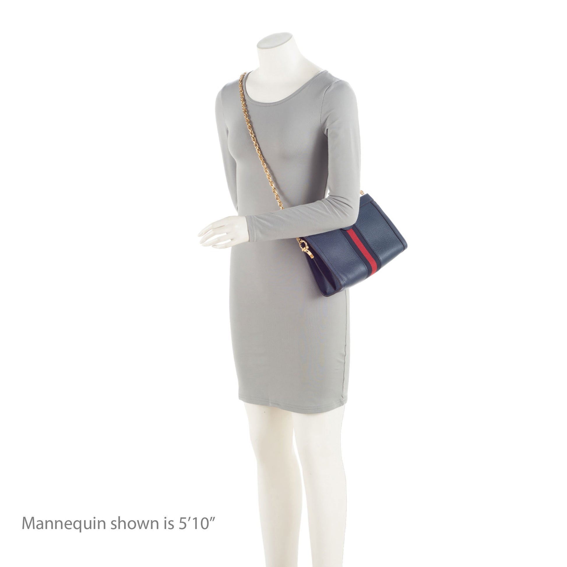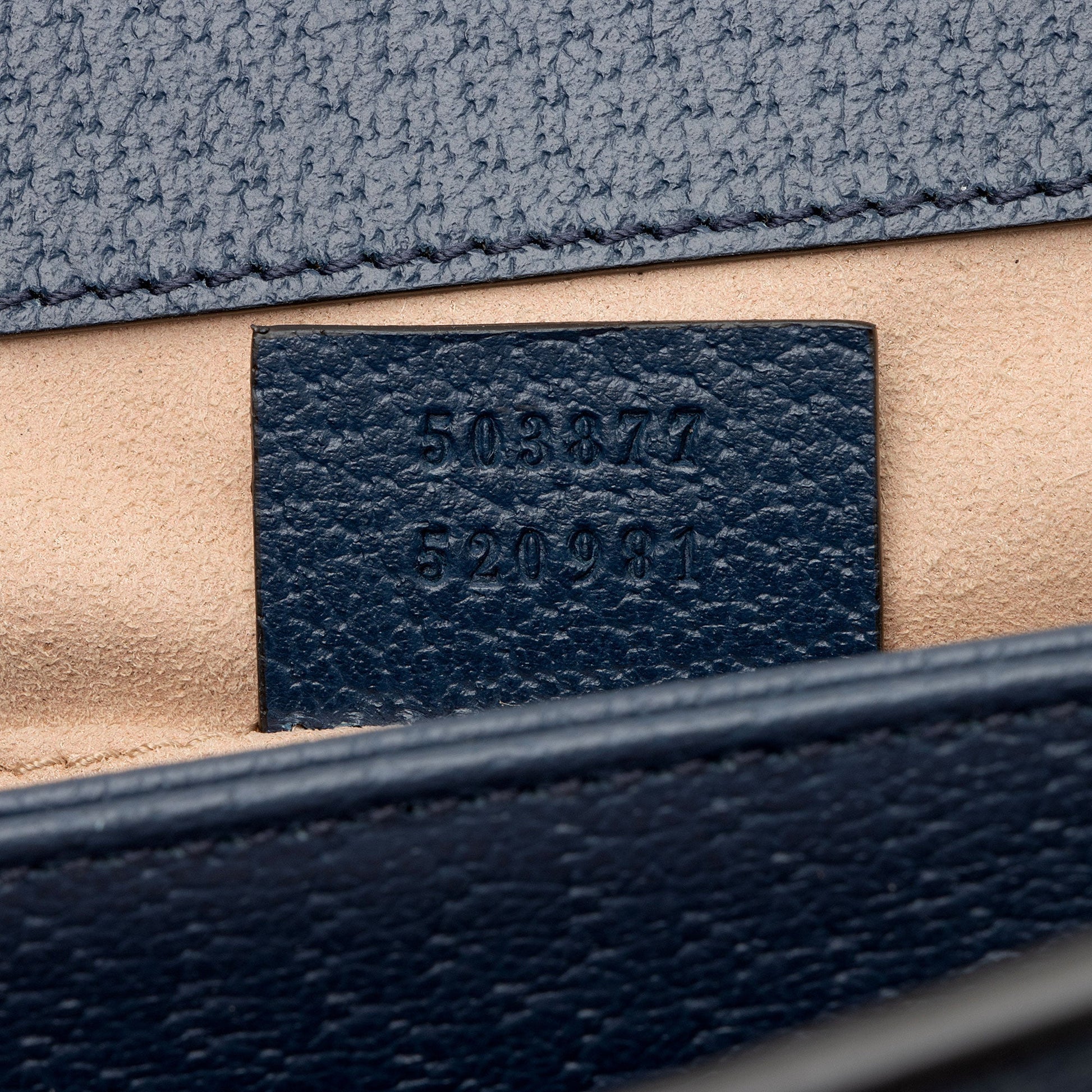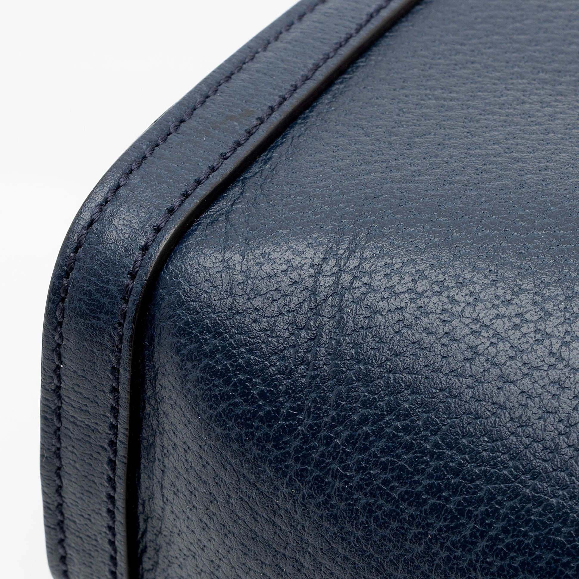 Condition Notes: Light creasing to exterior front bottom corners. Minor surface scratches to hardware. Please note: Read product details carefully. This is a dark blue bag.