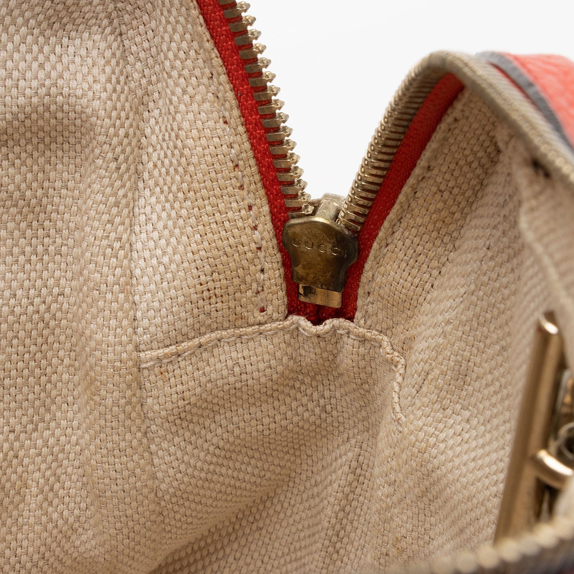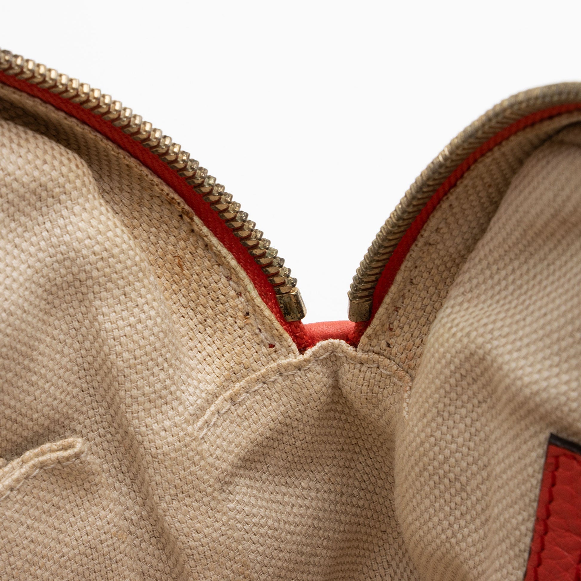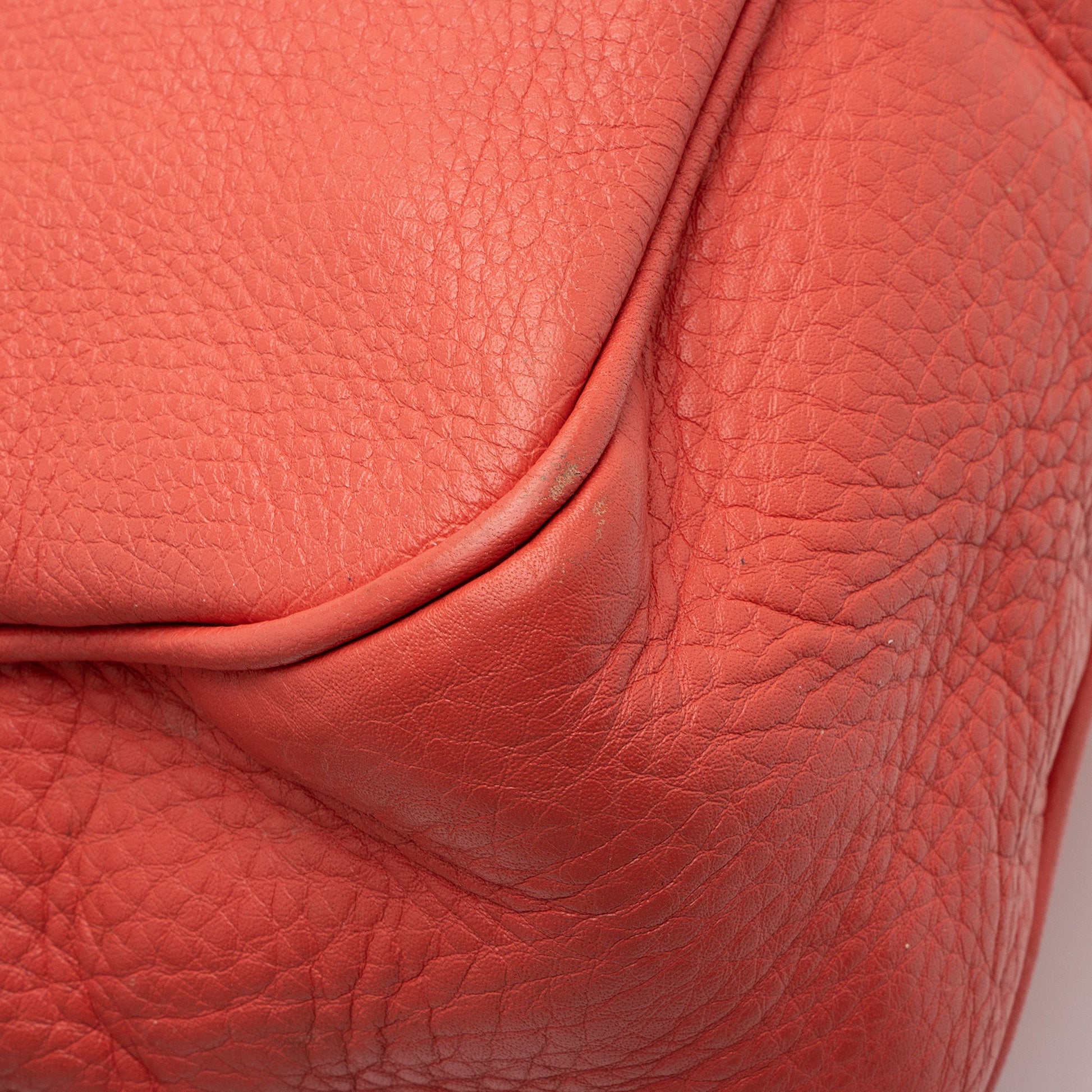 Condition Notes: Marks and light scuffs to exterior bottom corners. Light marks and visible creasing throughout exterior. Loss of structure to exterior. Surface scratches to hardware. Light marks and darkening throughout interior.