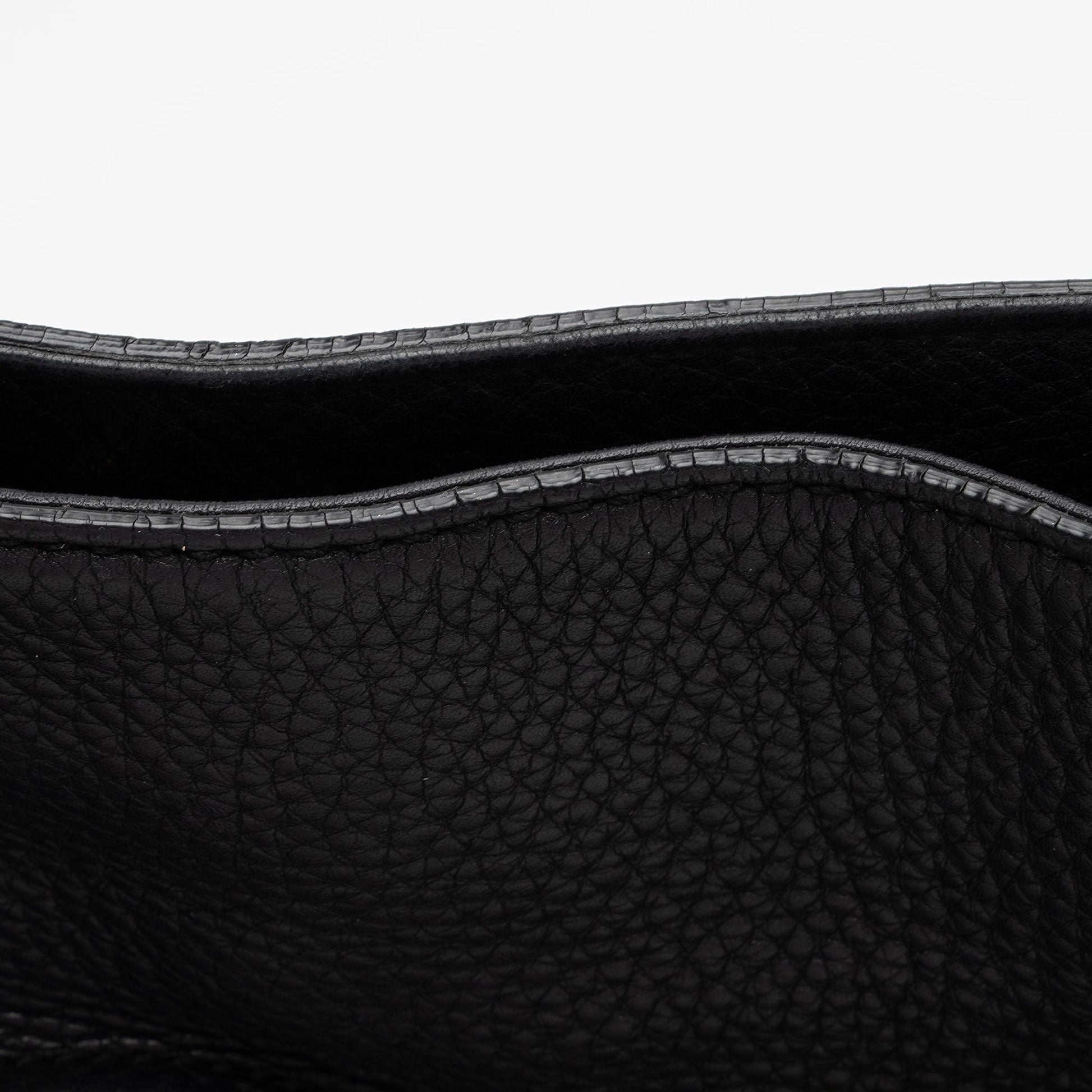 Condition Notes: Scuffs to exterior bottom corners. Light creasing and minor scuffs throughout exterior. Surface scratches to hardware. Light marks, ink marks, and minor discoloration throughout interior. Missing tassel.