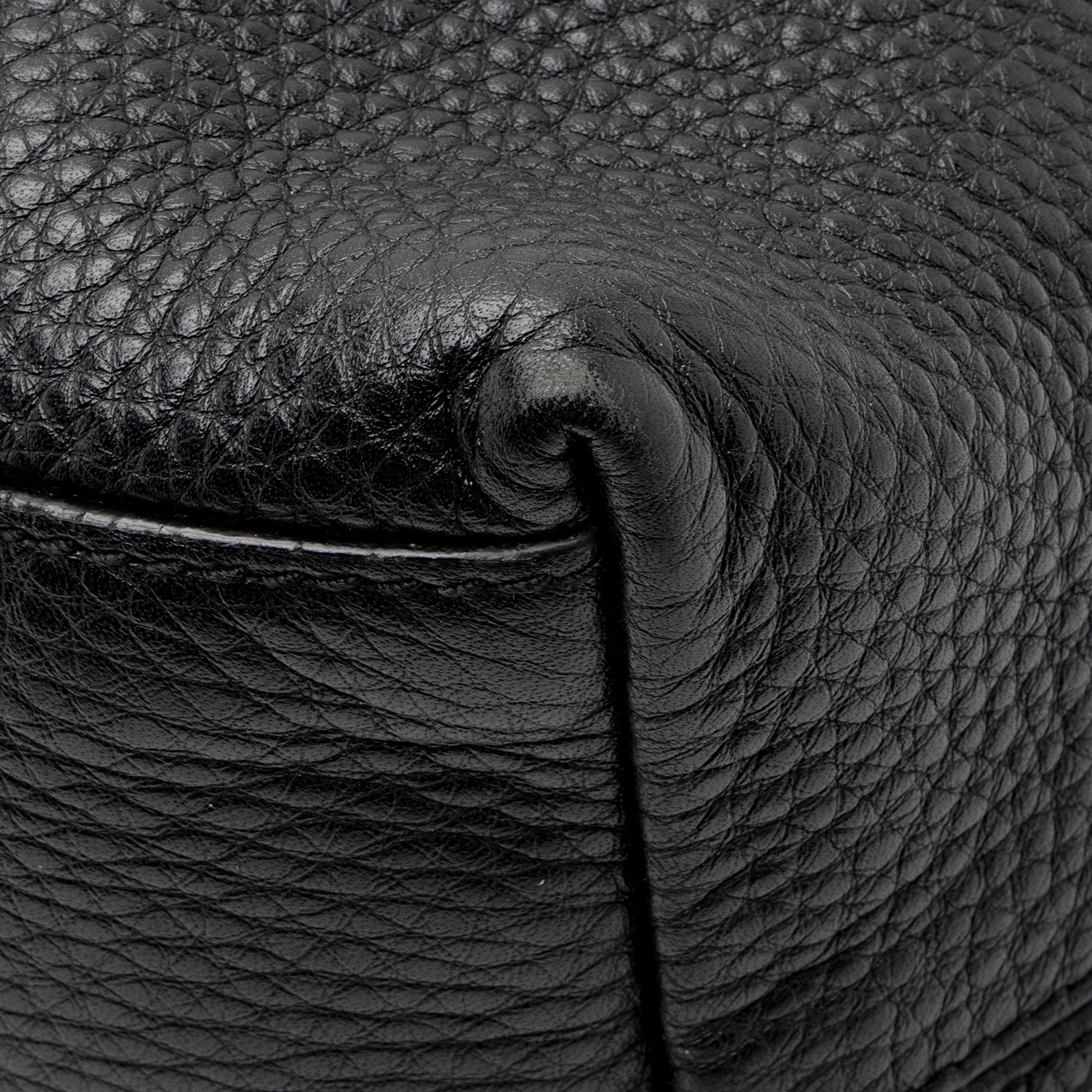 Condition Notes: Scuffs and wear to exterior bottom corners. Light creasing and minor scuffs throughout exterior. Light imprints and creasing to leather on handles. Surface scratches to hardware. Light marks and minor discoloration throughout interior. Light perfume odor.