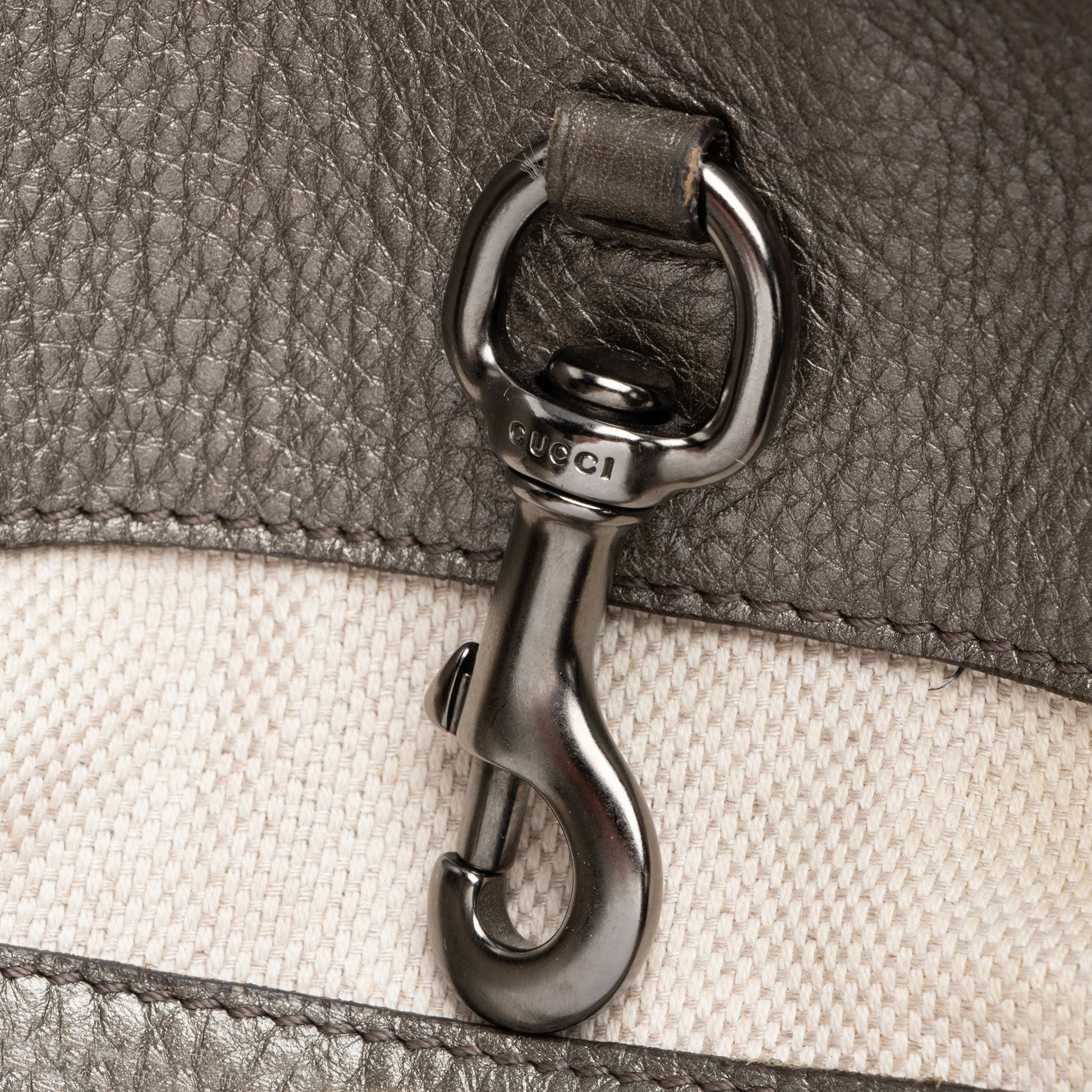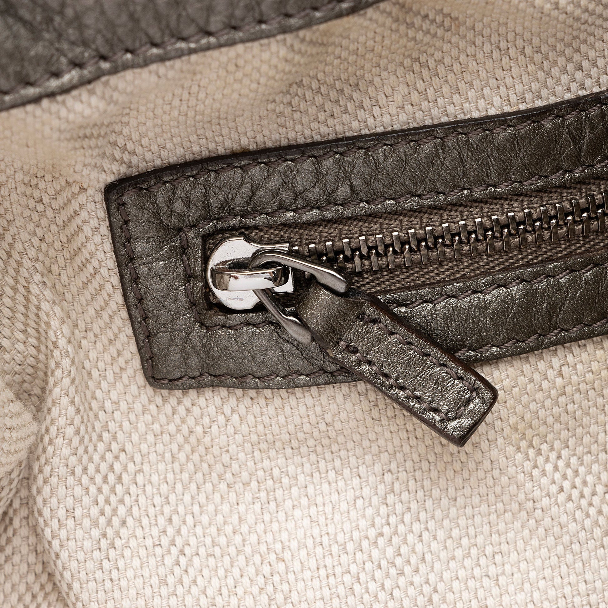 Condition Notes: Visible wear to exterior bottom corners. Light darkening to handle leather. Light creasing and scuffs throughout exterior. Light surface scratches to hardware. Marks and light darkening throughout interior.