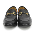 Gucci loafers in smooth black leather and gold horsebit on the front.