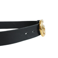 Gucci belt in black smooth leather with a 'GG' 'Marmont' buckle in gold hardware.