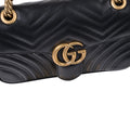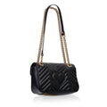 The ultimate It-Girl bag for any young woman with a love for luxury and a fashion forward sense of style. The Marmont bag is one of the most popular and in demand bags to come from Gucci. With the brand's signature matelassé leather design and prominent, antique gold tone GG logo and chain, this bag is the perfect example of a "simple statement" piece. Wear this bag with pretty much anything in your wardrobe, dress it up with a skirt and heels for more formal events, or dress it down with ripped jeans and a simple top for a more casual look. This bag is one of the most memorable bags of our generation, a true investment piece for any Gucci lover.