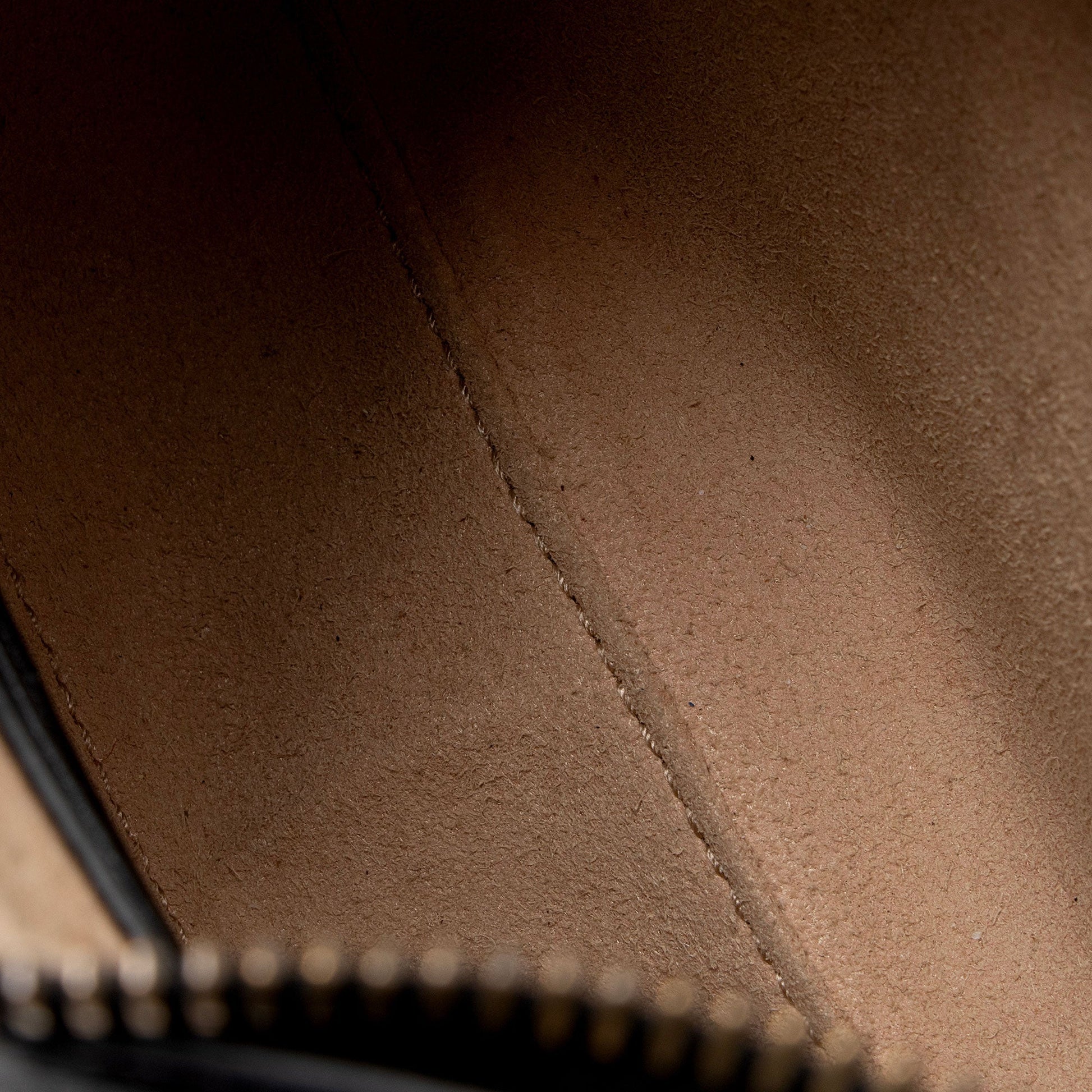 Condition Notes: Creasing and light scuffs throughout exterior. Warping throughout zip closure making it harder to open. Light surface scratches to hardware. Light marks and wear throughout interior. Light perfume odor.