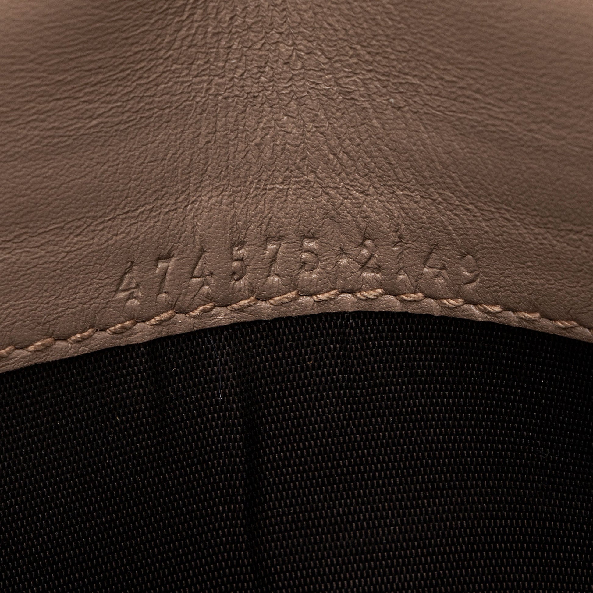 Condition Notes: Scuffs and marks throughout exterior edges and corners. Creasing and light scuffs throughout exterior. Visible tarnishing and surface scratches to hardware. Creasing and marks throughout interior flap. Light marks and wear throughout interior.