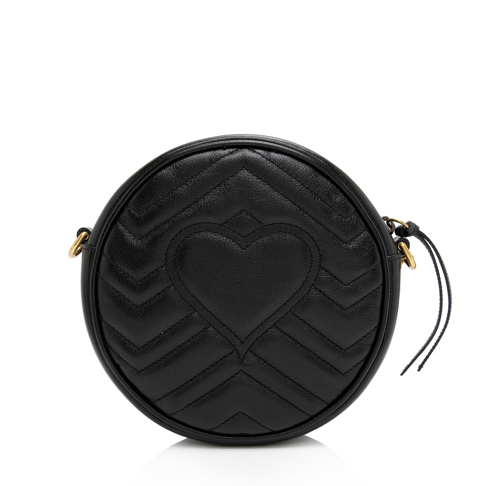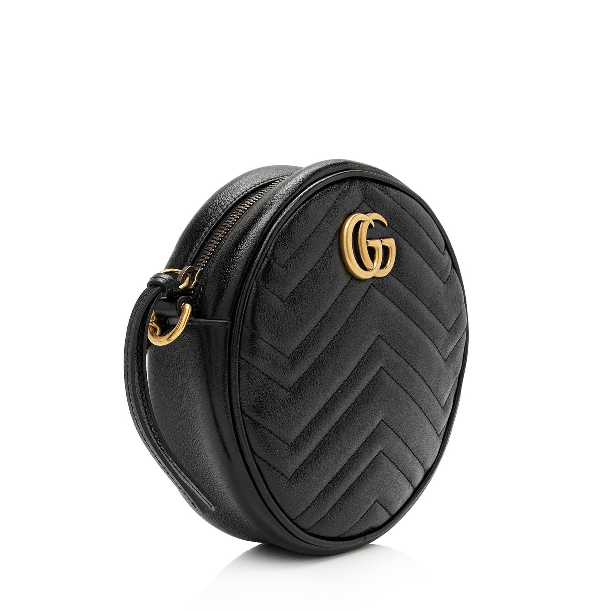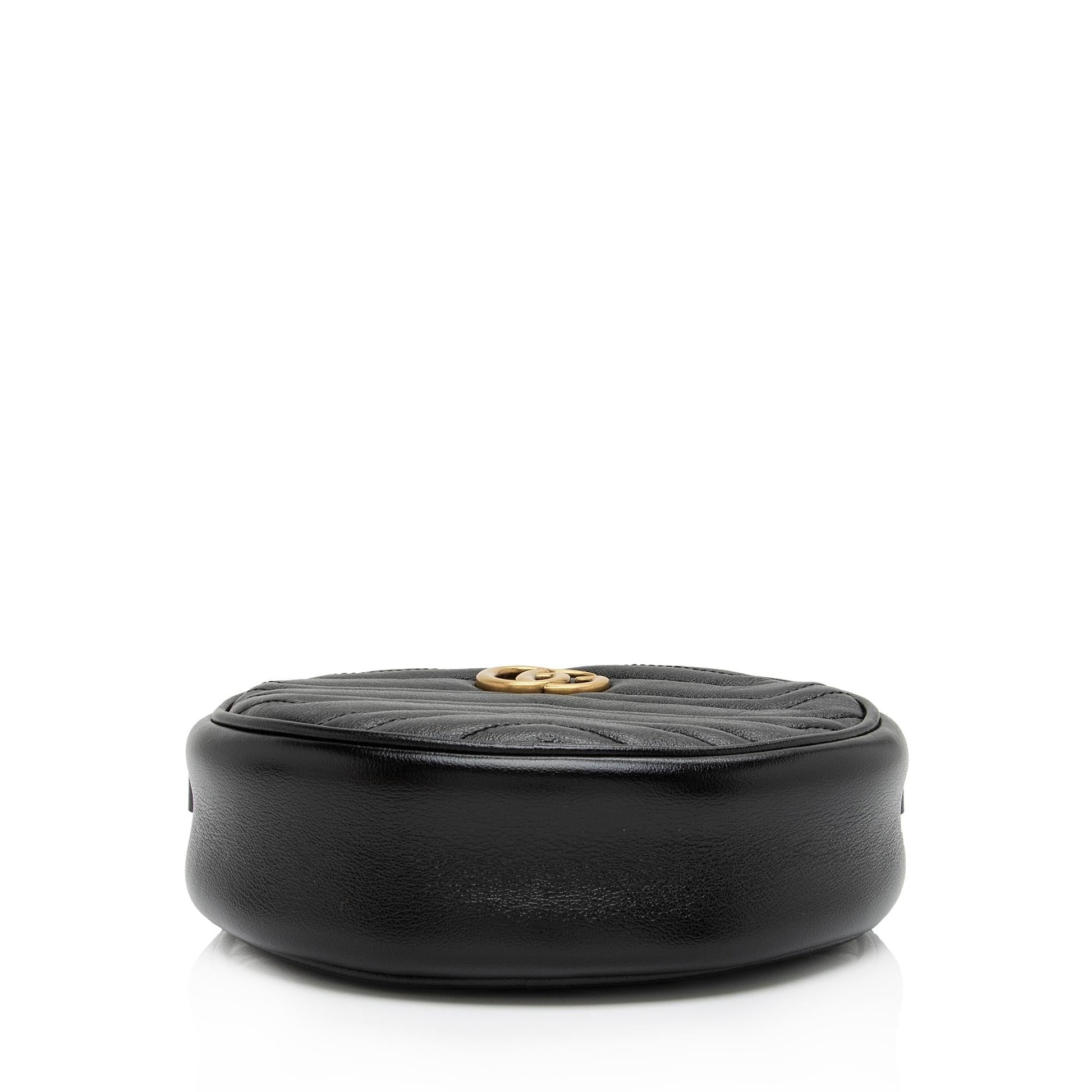 Gucci Matelasse Leather GG Marmont Round Mini Shoulder Bag (SHF-16xHJX)