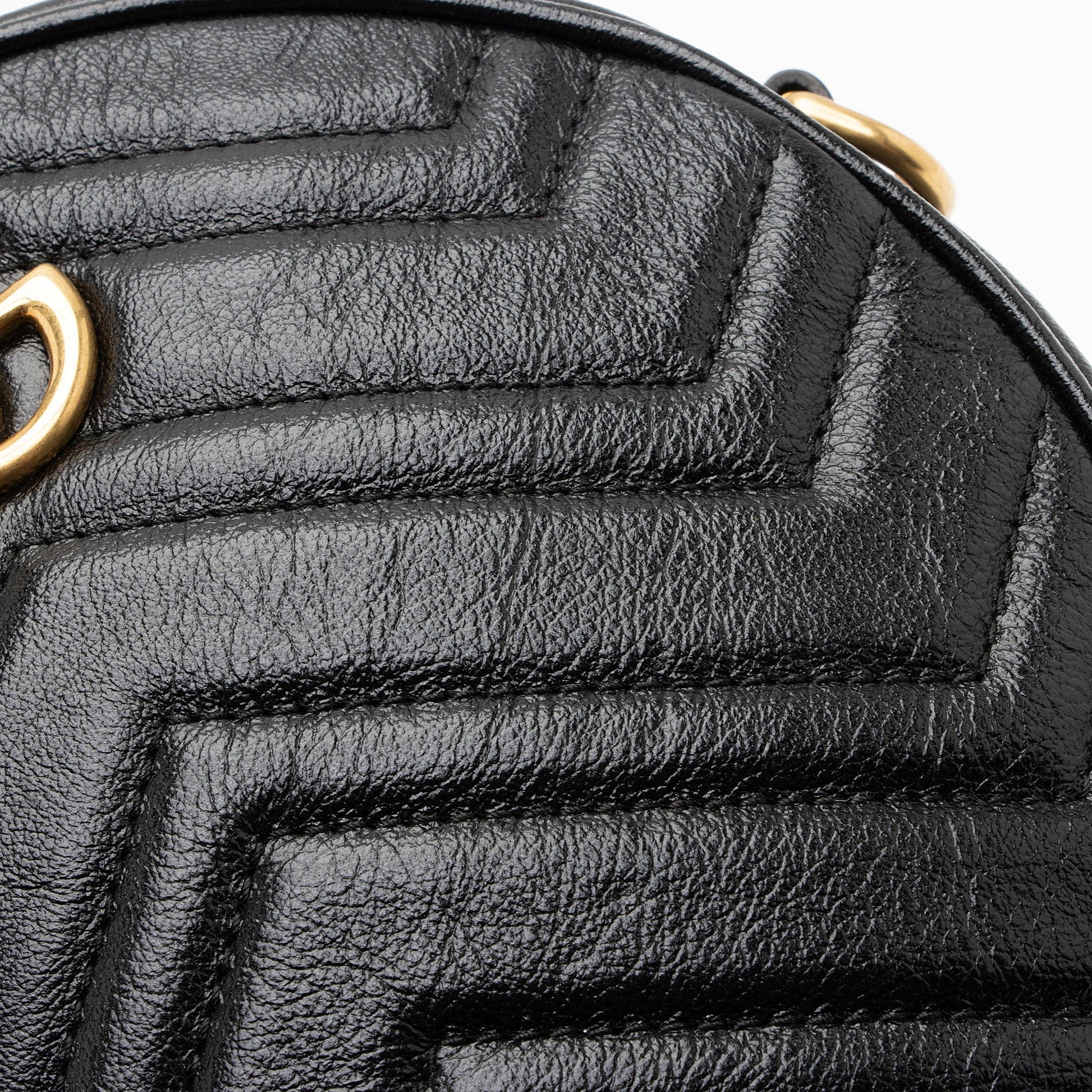 Gucci Matelasse Leather GG Marmont Round Mini Shoulder Bag (SHF-CQiicg)