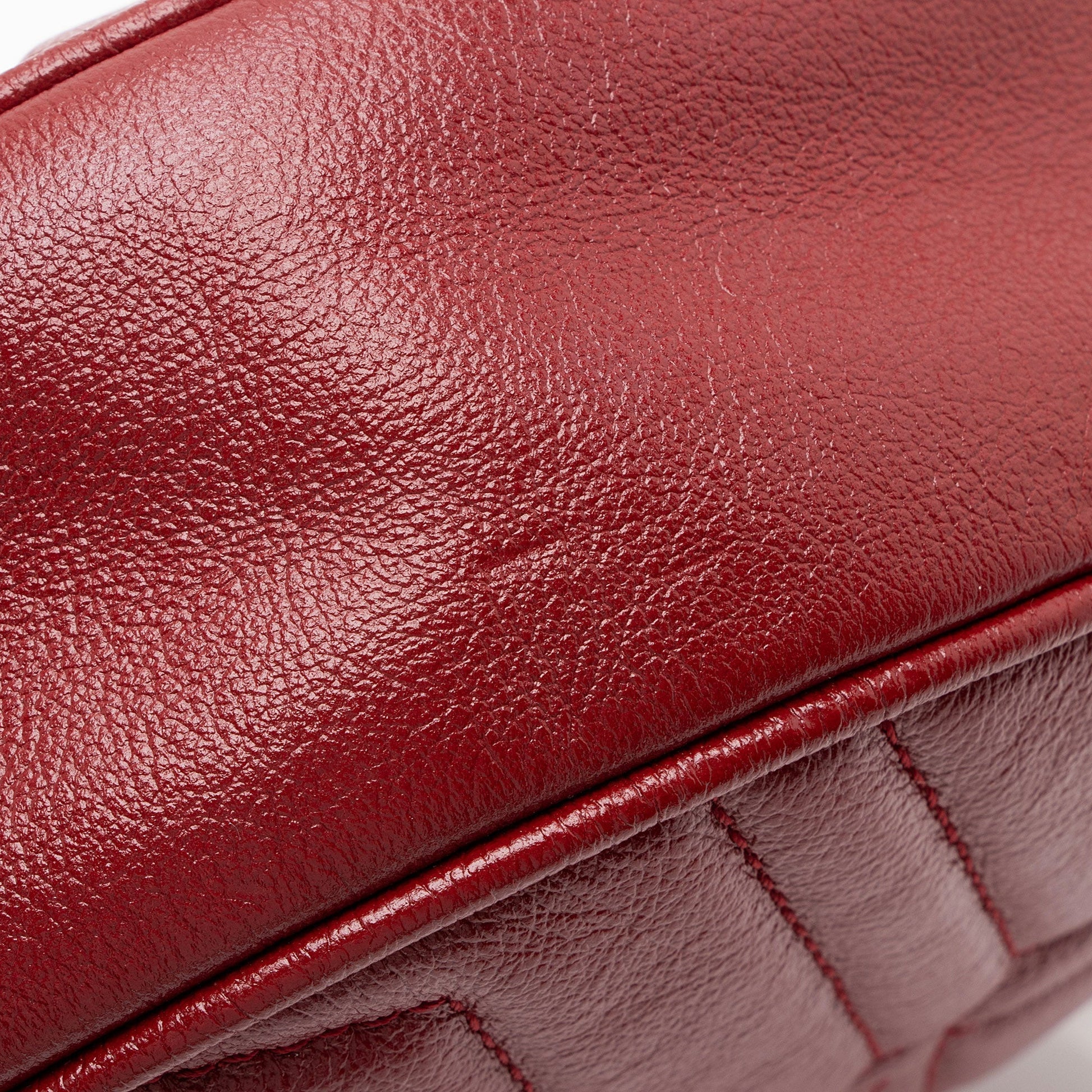 Condition Notes: Creasing throughout exterior causing light loss of structure. Surface scratches to hardware. Light marks throughout interior.