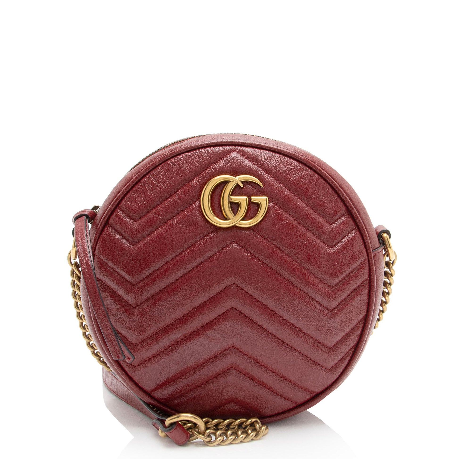 Gucci Matelasse Leather GG Marmont Round Mini Shoulder Bag