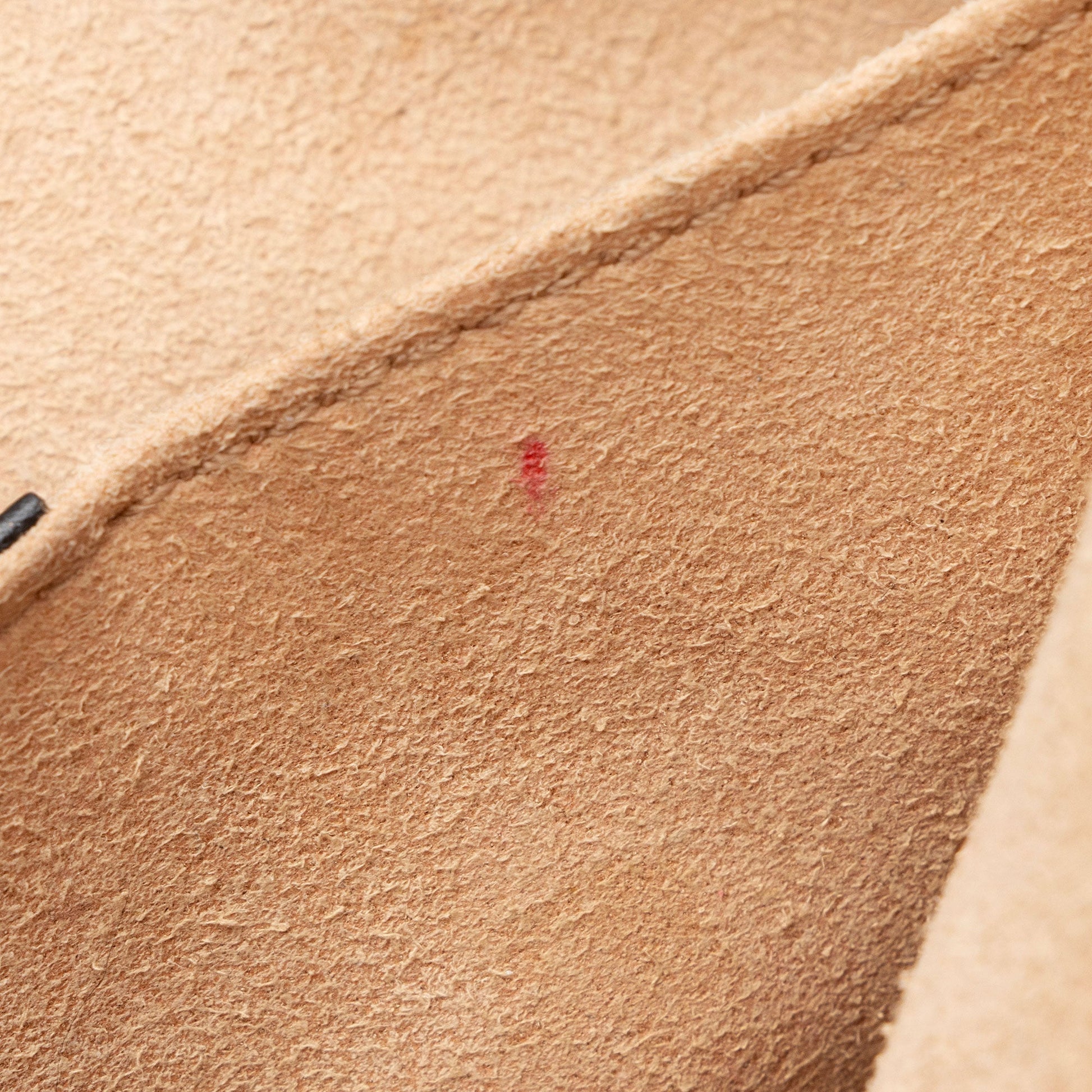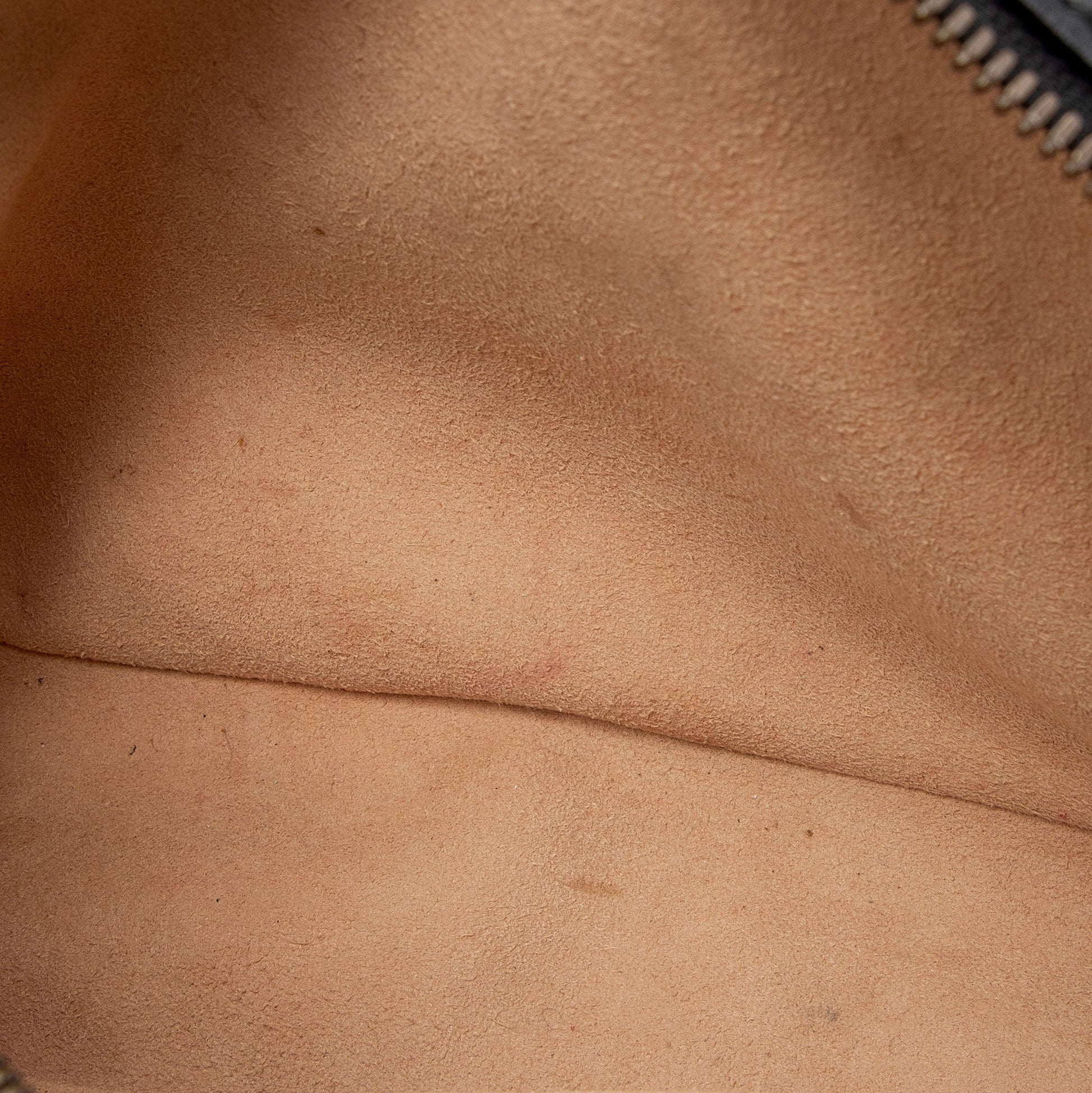 Condition Notes: Light creasing and loss of structure throughout exterior. Light marks throughout exterior. Minor cracking throughout shoulder strap leather casing. Light surface scratches to hardware. Marks and light darkening throughout interior.