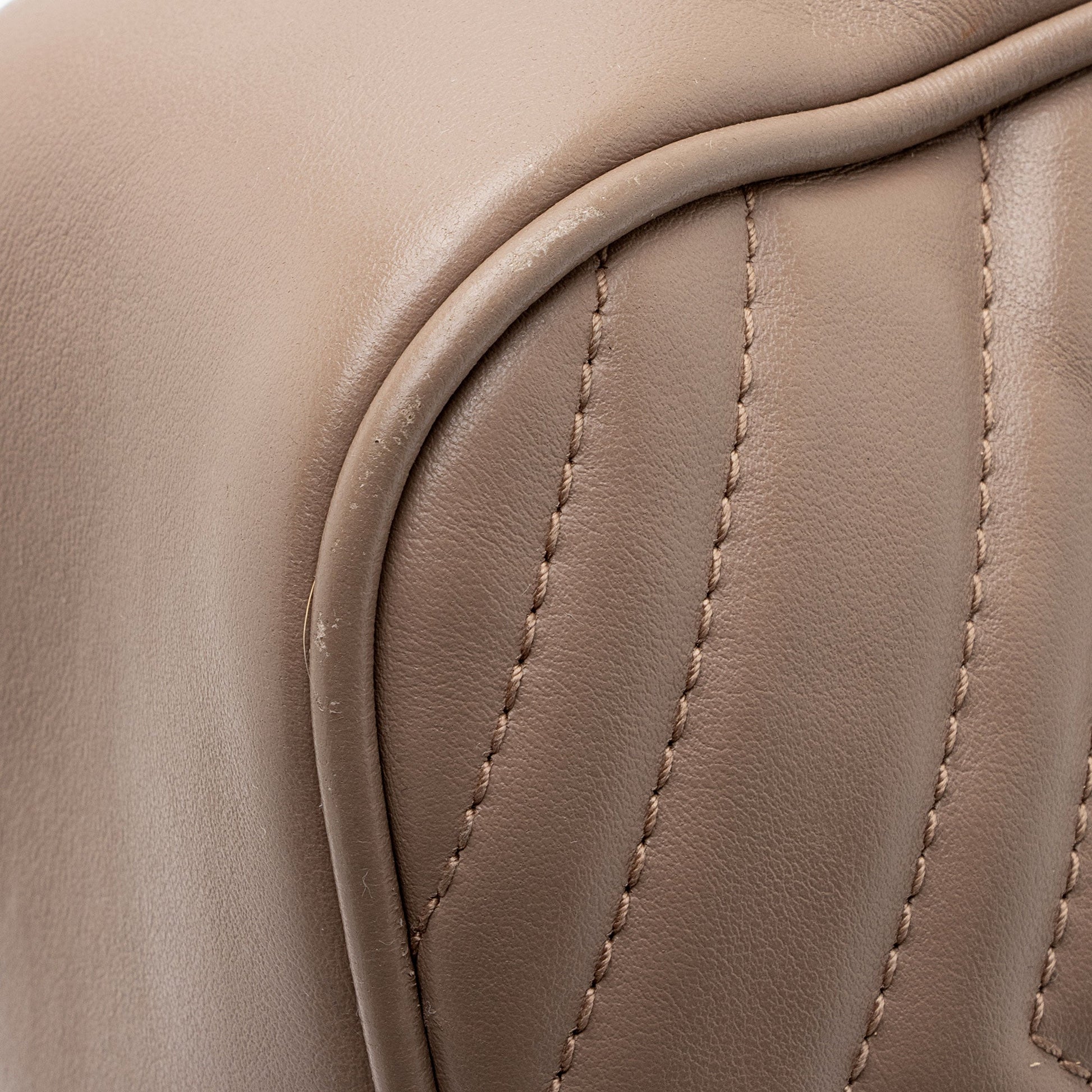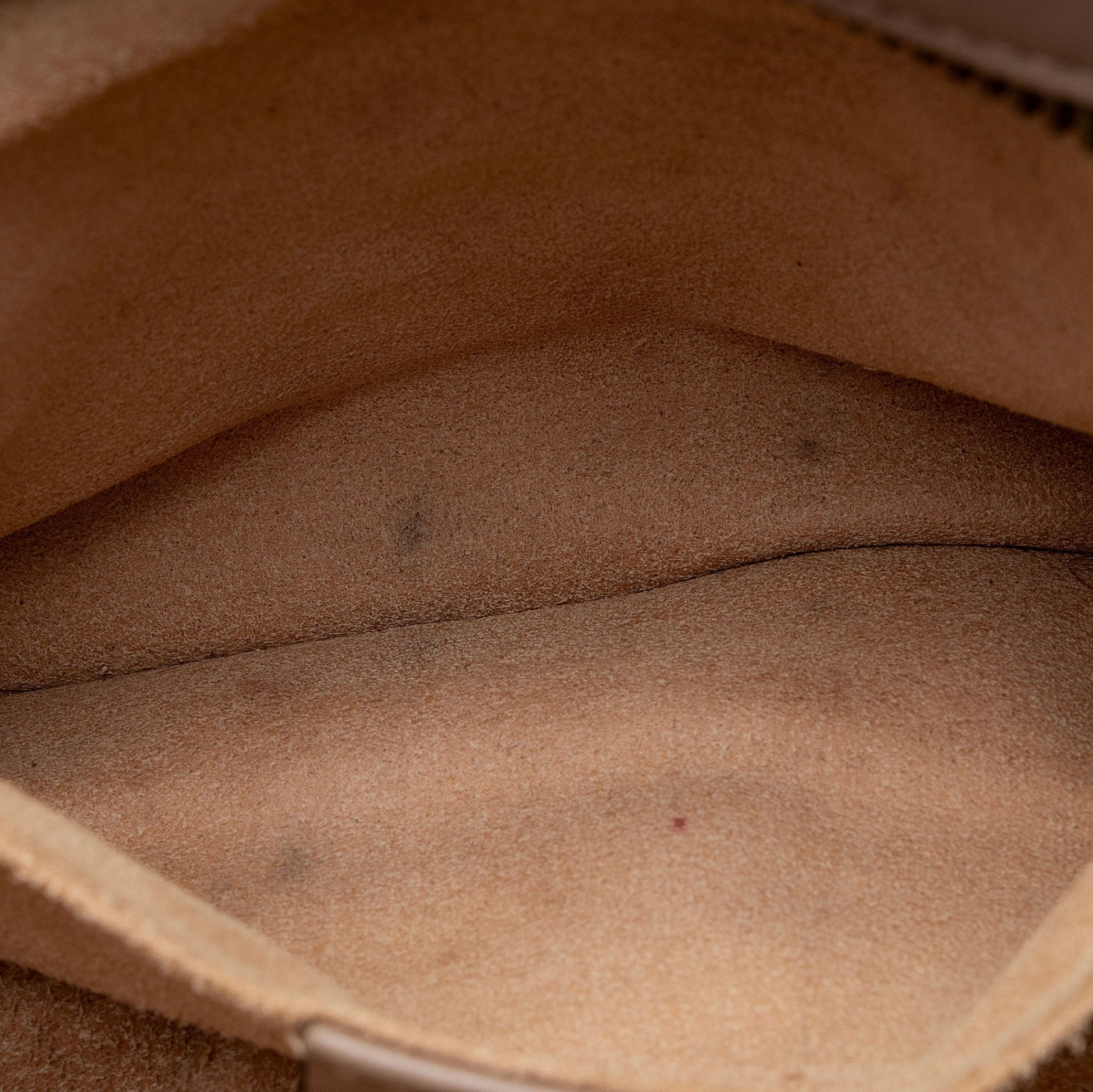 Condition Notes: Minor wear to exterior bottom corners. Light creasing to exterior causing minor loss of structure. Light imprints throughout exterior. Light surface scratches to hardware. Darkening and marks throughout interior.