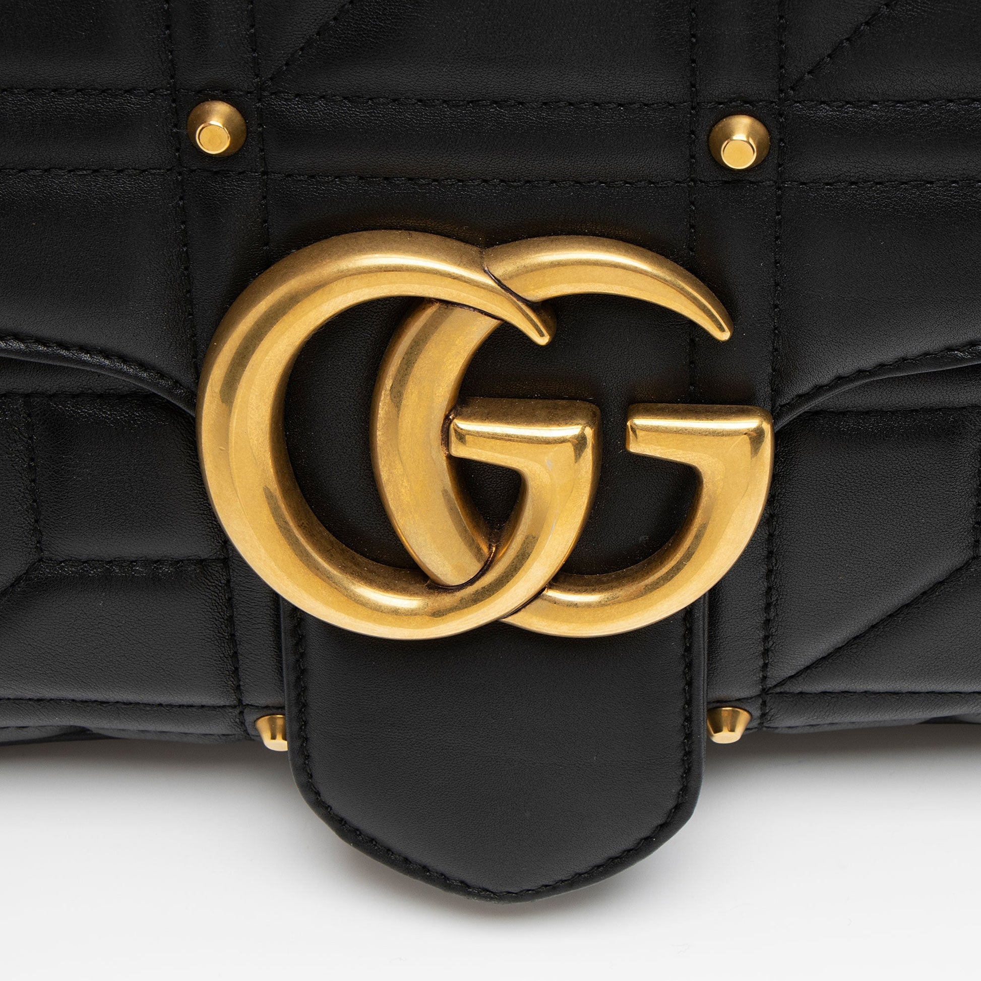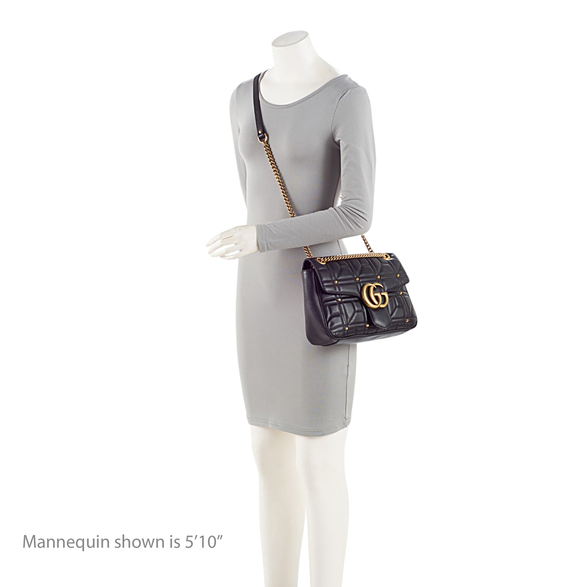 Gucci Matelasse Leather GG Marmont Studded Medium Flap Shoulder Bag