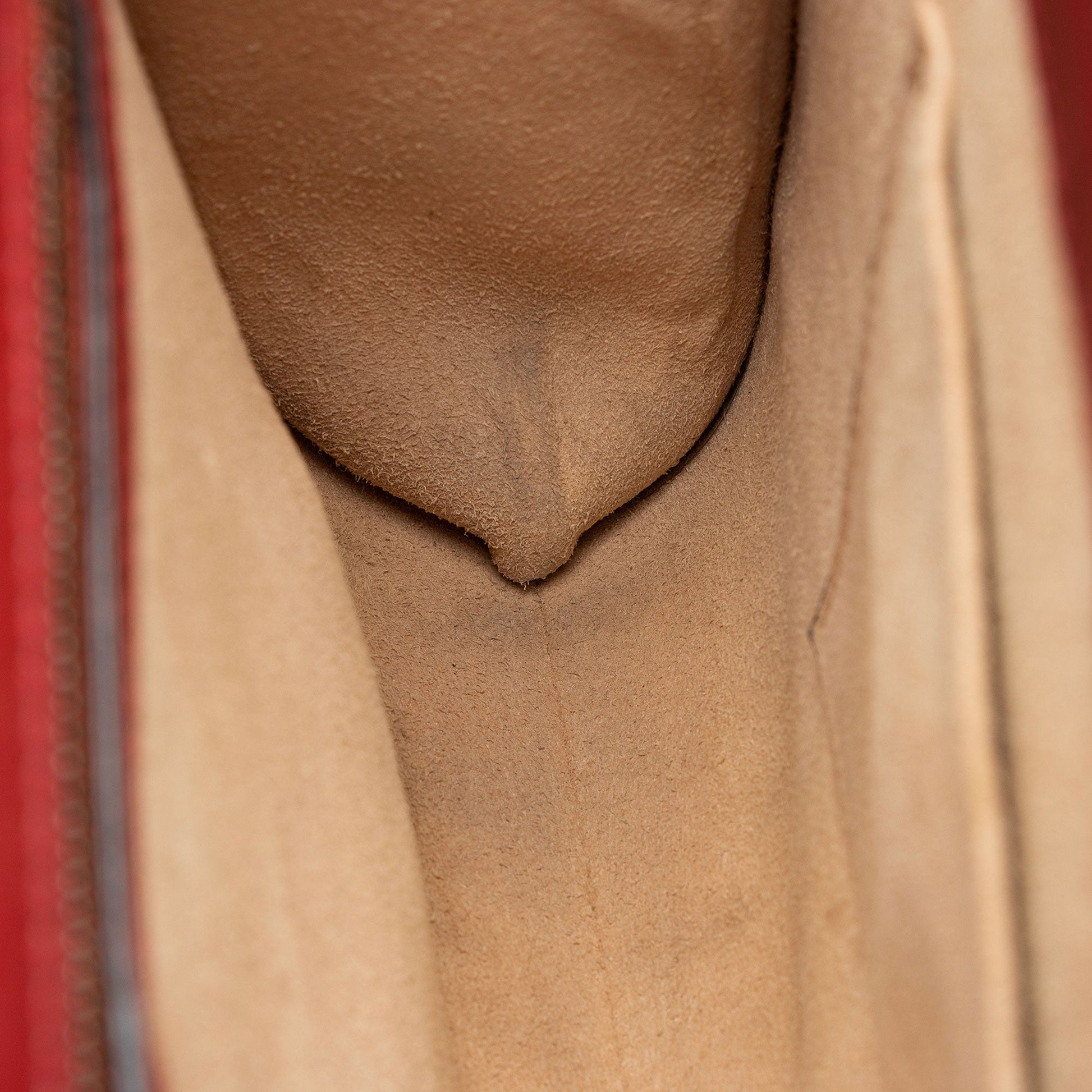 Condition Notes: Light scuffs throughout exterior leather trim. Light surface scratches to hardware. Visible marks and minor darkening throughout interior.
