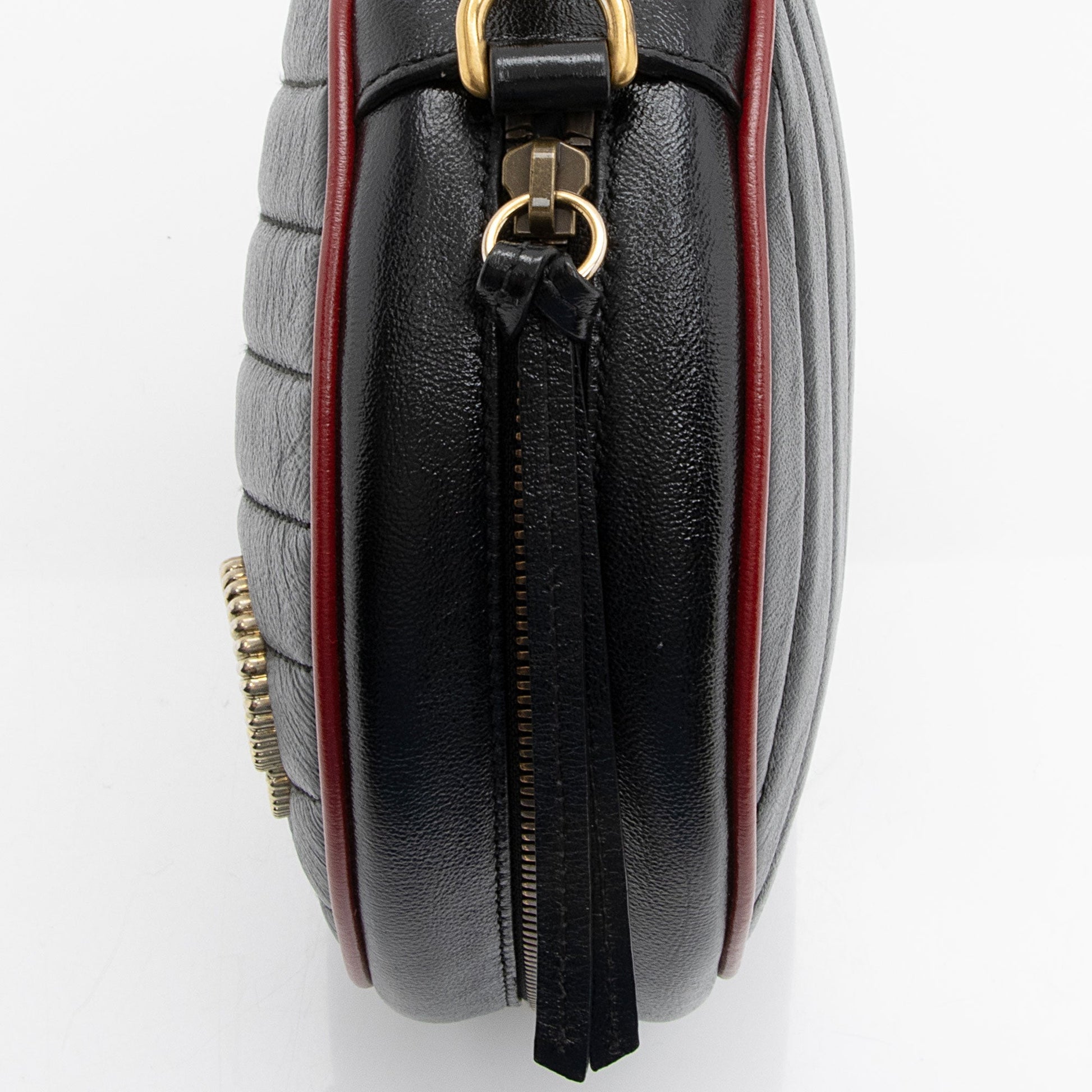 Gucci Matelasse Leather Torchon GG Marmont Round Mini Shoulder Bag (SHF-2rFjwc)