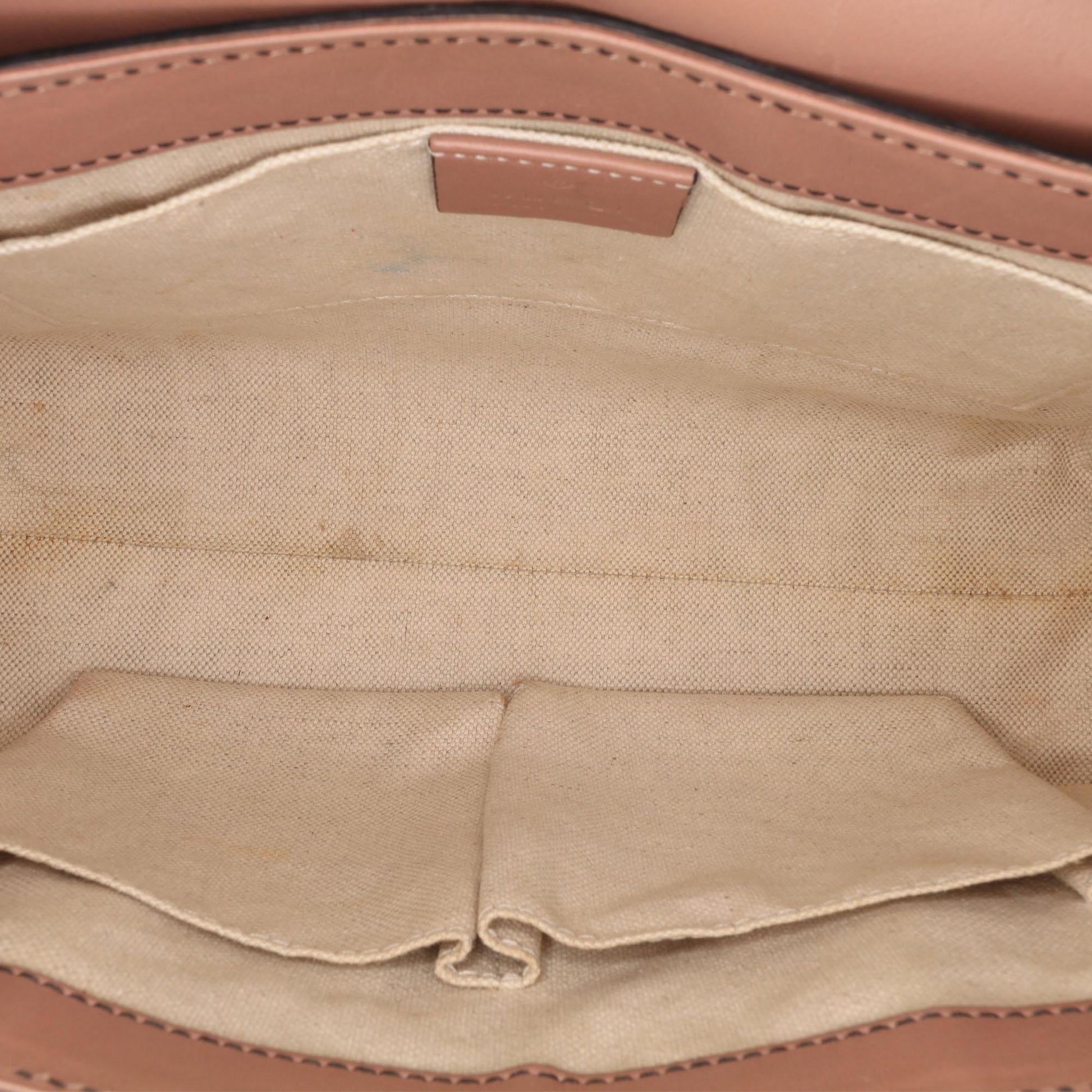 Condition Notes: Exterior Back Creased, Worn. Exterior Corners Worn. Exterior Front Worn. Exterior Front stained with Transfer Of Color. Exterior Handle Split, Worn. Interior Lining stained with Transfer Of Color, Other. Practical Attachment Scratched. Exterior Top Worn.