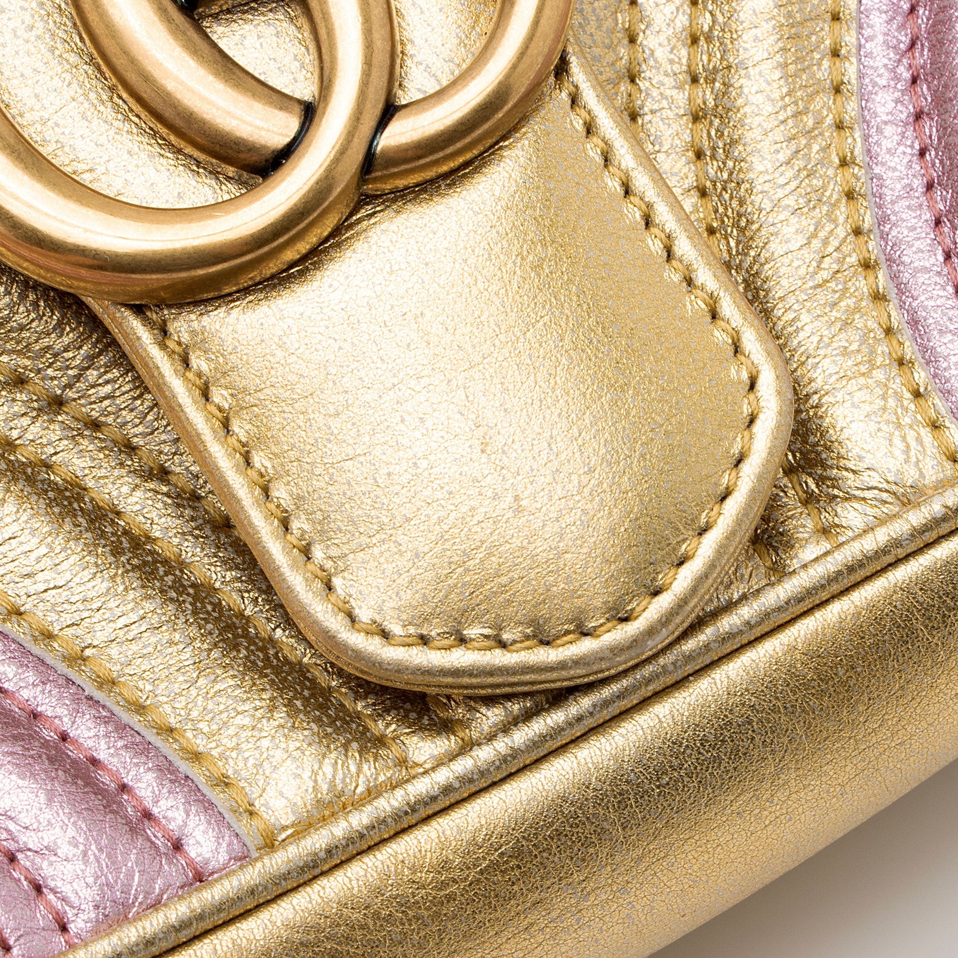 Gucci Metallic Matelasse Leather GG Marmont Mini Flap Shoulder Bag (SHF-6l0XWs)