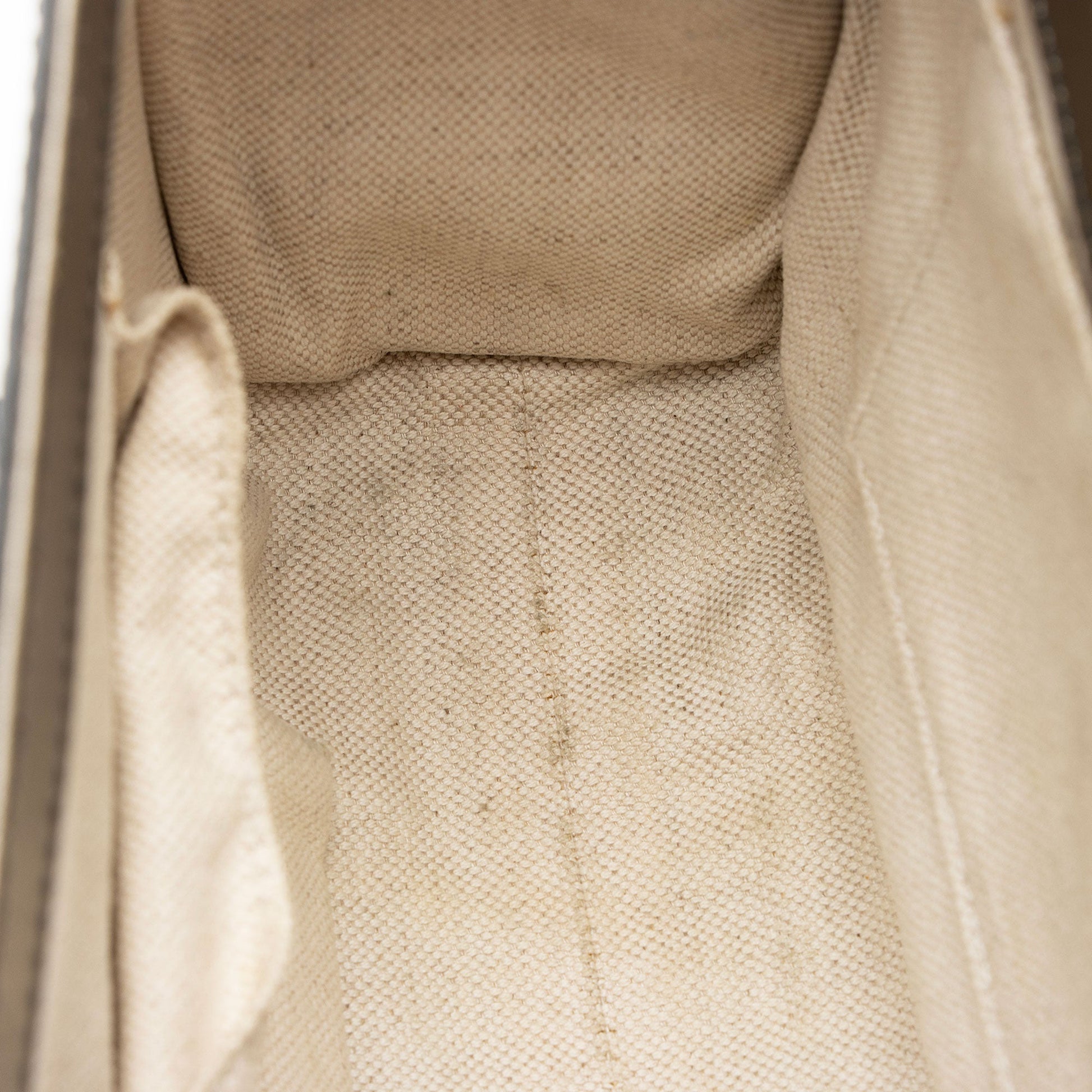 Condition Notes: Light warping and scuffs throughout exterior. Light wear to exterior bottom corners. Surface scratches to hardware. Visible scuffs and wear throughout interior flap. Darkening and light discoloration throughout interior.