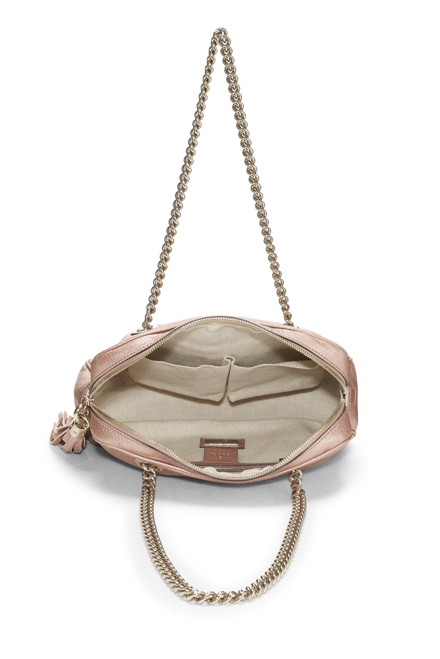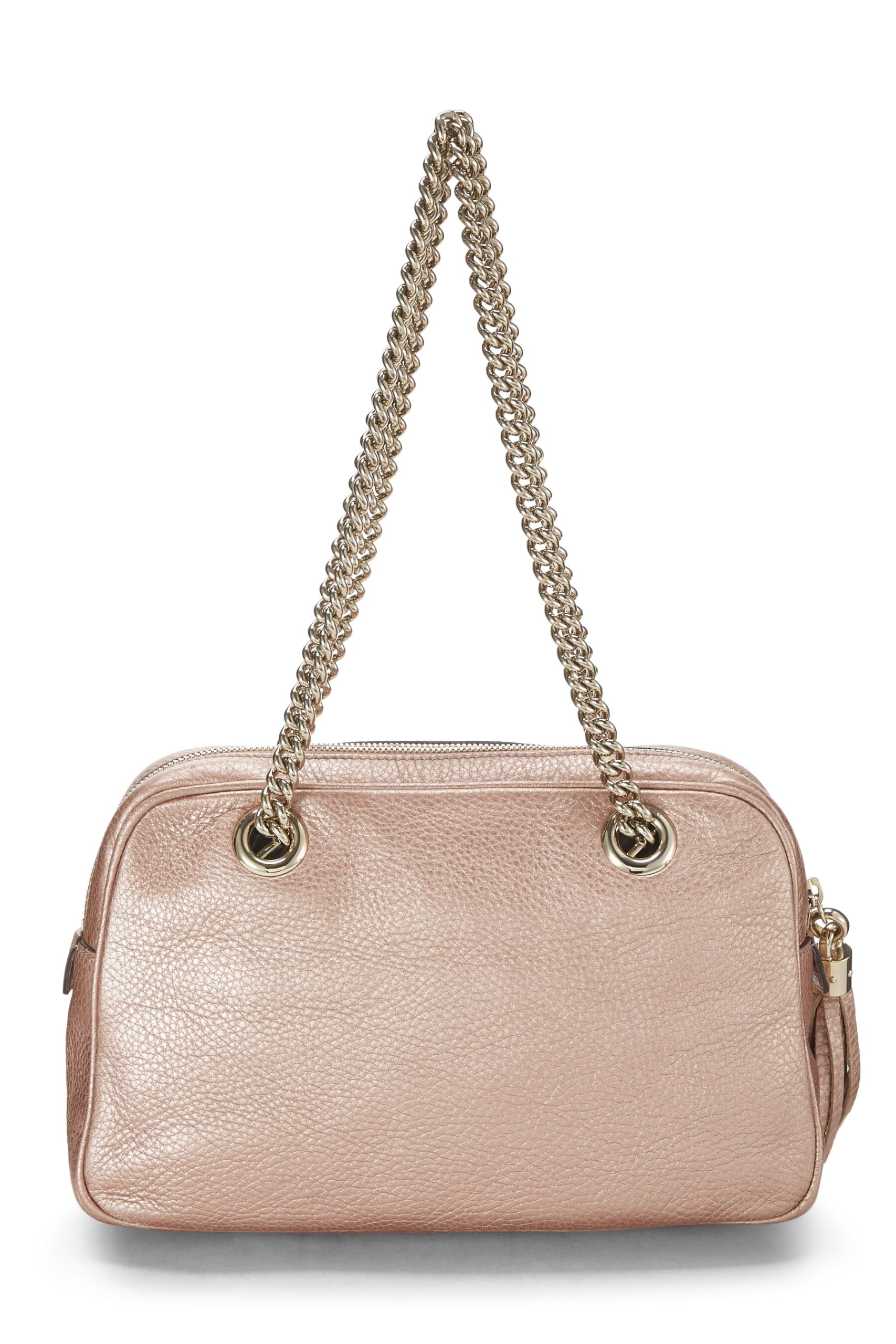 Gucci, Metallic Pink Grained Leather Soho Chain Shoulder Bag, Pink