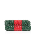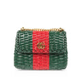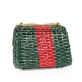 From their Pre-Fall 2018 collection, Gucci presented their adorable mini-wicker Web bag in the brand's signature green and red stripes. The perfect little companion to hold all your tiny essentials, the mini Web is the ideal compliment to anything you meat have in your wardrobe. Suitable for day to evening usage, this bag is a true must-have for any Gucci lover. With its romantic gold tone chain strap and iconic GG logo placed prominently on the single flap, this gem is a well-worthy addition to any luxury handbag collection. Youthful and playful, stylish and chic, the mini-wicker Web is a purchase you won't regret.