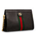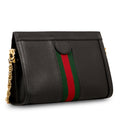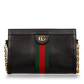 Crafted from the brand's textured black calf leather GG Supreme monogram canvas, Gucci presents their Ophidia cross-body bag. Accented with gold-tone hardware, brown leather trimming and Gucci's classic red and green fabric strip down the front, the Ophidia is an absolute must-have for any woman with a love for luxury and a soft spot for timepieces. Though the Ophidia isn't a vintage model, it is the perfect balance between old and new. A somewhat modernized version of a traditional Gucci bag, the Ophidia reminds us of a vintage piece that's been pushed forward into the contemporary world - and we're here for it. Suitable for any and every occasion, this bag is the ideal compliment to pretty much anything in your wardrobe. A sophisticated piece with elements of youth and playfulness, the Ophidia is a well-worthy addition to any woman's luxury handbag collection.