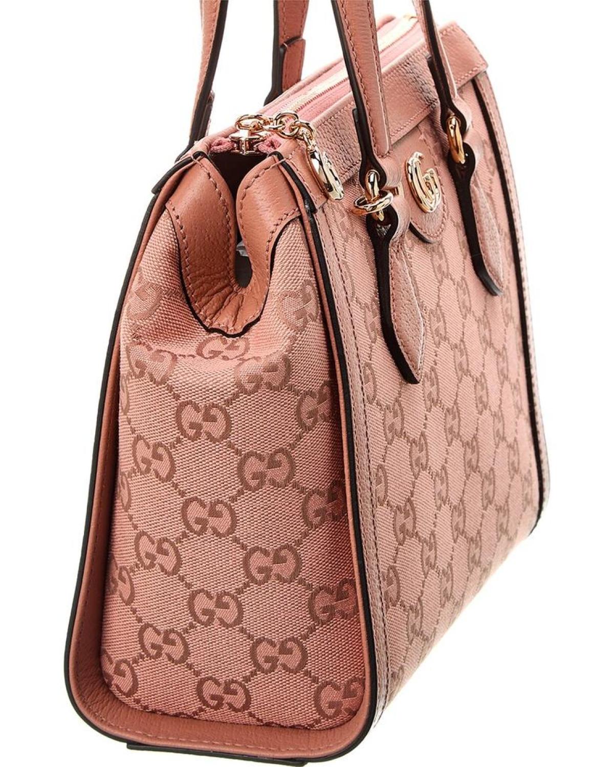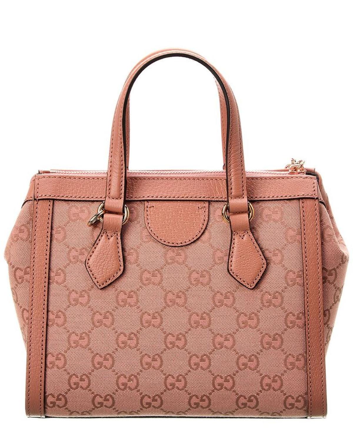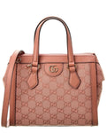 Introducing the Gucci Ophidia Small GG Canvas & Leather Shoulder Bag, a must-have accessory for the modern woman. Crafted with impeccable attention to detail, this luxurious piece showcases the iconic 'Gucci' brand and its commitment to Italian craftsmanship.Made in Italy, this shoulder bag features a stunning combination of pink GG canvas and leather, exuding elegance and style. The exterior design is adorned with rose gold-tone hardware and a captivating interlocking G logo accent, adding a touch of sophistication to your ensemble.Inside, you'll find a soft microfiber lining and practical interior pockets, providing ample space to organize your essentials. Whether you're heading to the office or a casual outing, this bag effortlessly complements any outfit.Measuring 9.2 inches wide, 7.5 inches high, and 4 inches deep, it offers the perfect size for all your daily essentials. The top handles with a 6-inch drop and the adjustable, removable shoulder strap with a 27-inch drop provide versatile carrying options, adapting to your needs and preferences.With a convenient zippered top, your belongings are secure while maintaining easy access. Please keep in mind that all measurements were taken by hand, and slight variations may occur.Rest assured, our products are genuine. While we occasionally source merchandise from trusted independent suppliers, we always stand by the ity of every product sold on our site. Embrace the eclectic and coveted world of Gucci, where Italian luxury is redefined, and make this exquisite shoulder bag your new style statement.