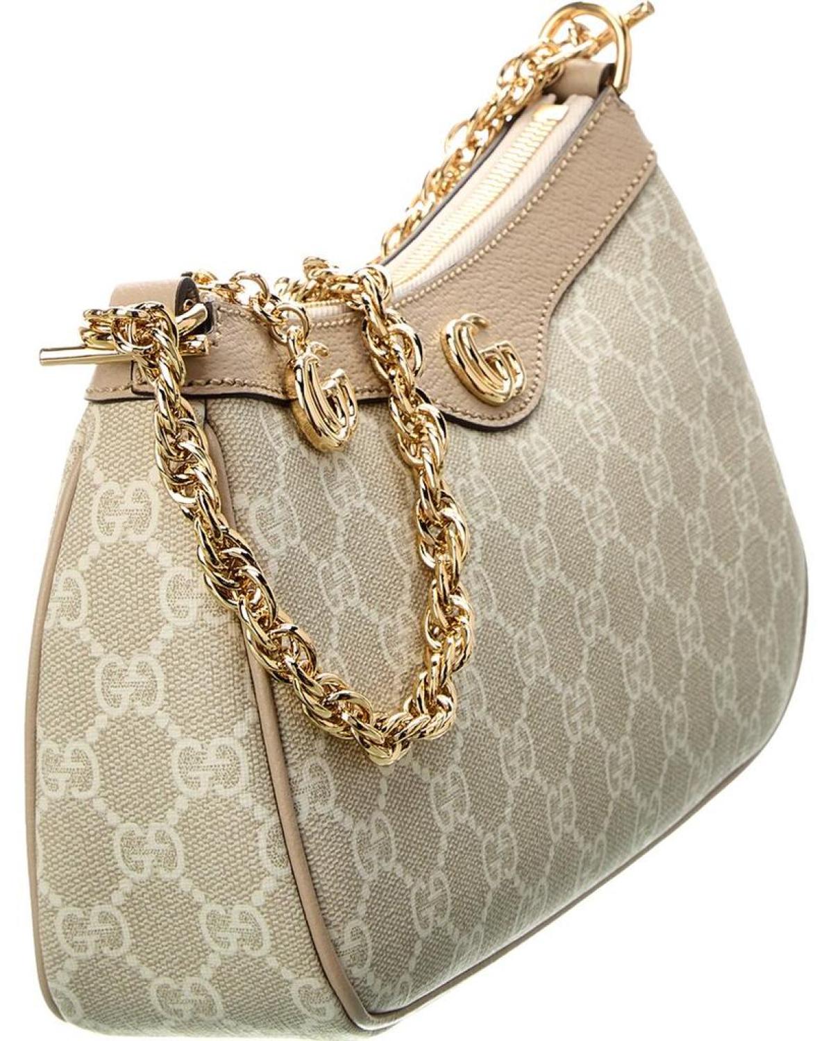 Introducing the Gucci Ophidia Small GG Supreme Canvas & Leather Shoulder Bag, the ultimate accessory for every fashion-forward woman. Made in Italy with impeccable craftsmanship and attention to detail, this shoulder bag is a true testament to Gucci's renowned luxury and style.The GG Supreme canvas and leather construction, combined with light fine gold hardware and the iconic interlocking G logo accent, exude elegance and sophistication. The beige and white color palette adds a touch of versatility, making it a perfect companion for any outfit.Designed with both style and functionality in mind, the interior features a canvas lining and ample space to accommodate your essentials. Measuring 9.8 inches wide, 6 inches high, and 2.4 inches deep, this compact bag strikes the perfect balance between practicality and chic.Carry it effortlessly using the top handle with a 7.5-inch drop for a more sophisticated look, or opt for the adjustable and removable shoulder strap with a 19.7-inch drop for added convenience. The zipper closure ensures the safety of your belongings while adding a touch of security.Please note that all measurements were taken by hand and are approximate; slight variations may occur.Rest assured, our products are genuine. In some cases, we may source merchandise from trusted independent suppliers rather than directly from the brand owner. However, we strictly stand by the ity of every product sold on our site.Elevate your style with the Gucci Ophidia Small GG Supreme Canvas & Leather Shoulder Bag - an investment piece that seamlessly combines Italian luxury, eclectic design, and coveted fashion.