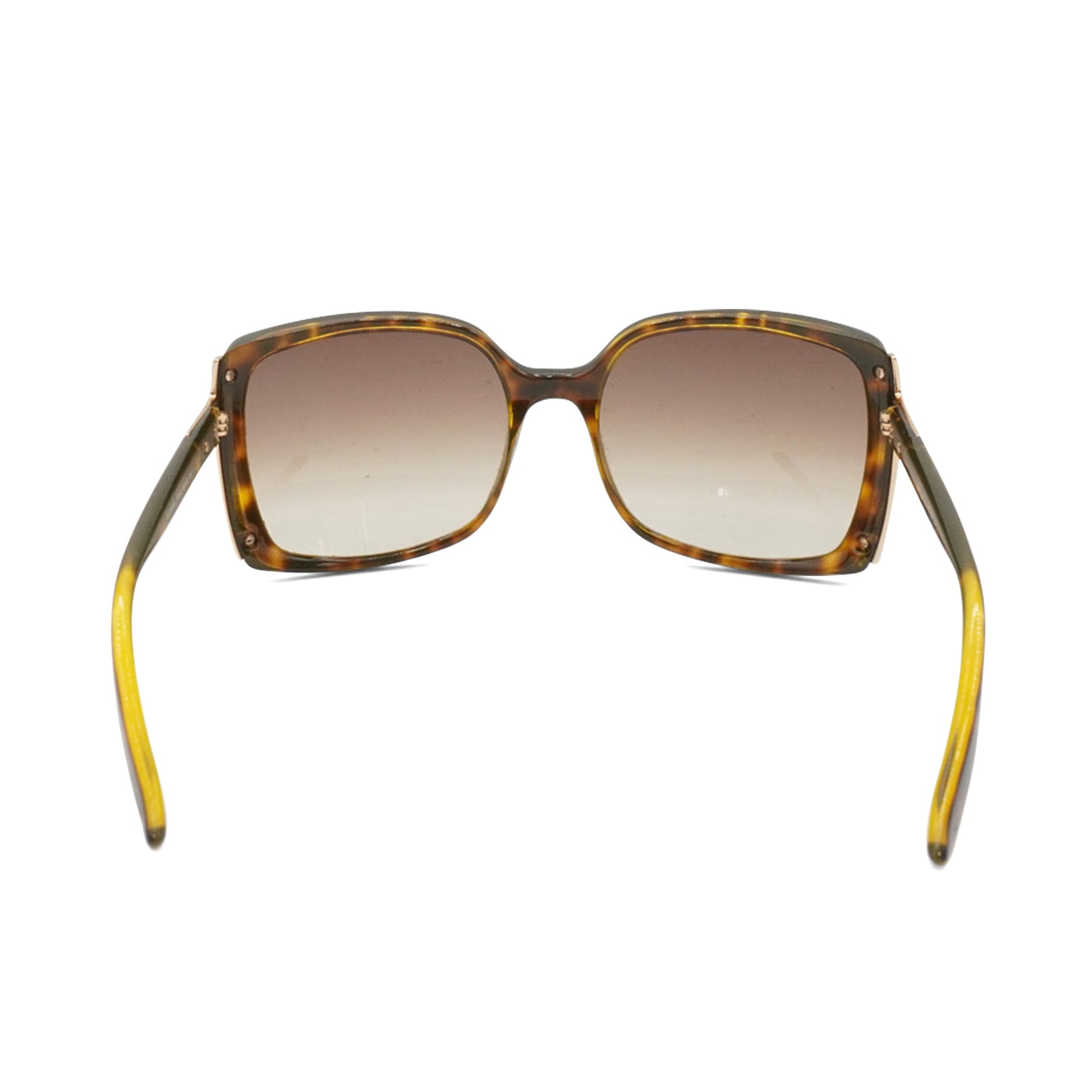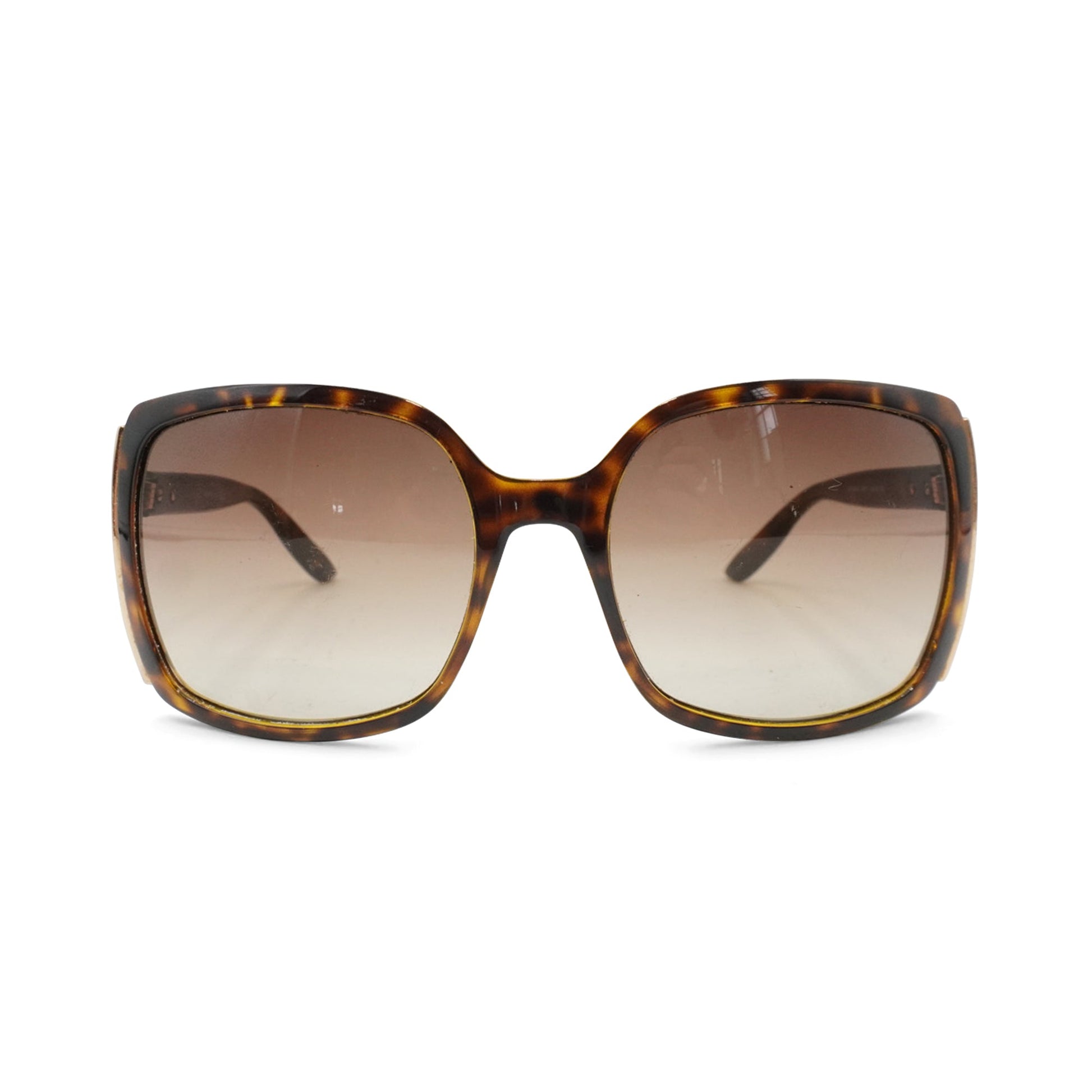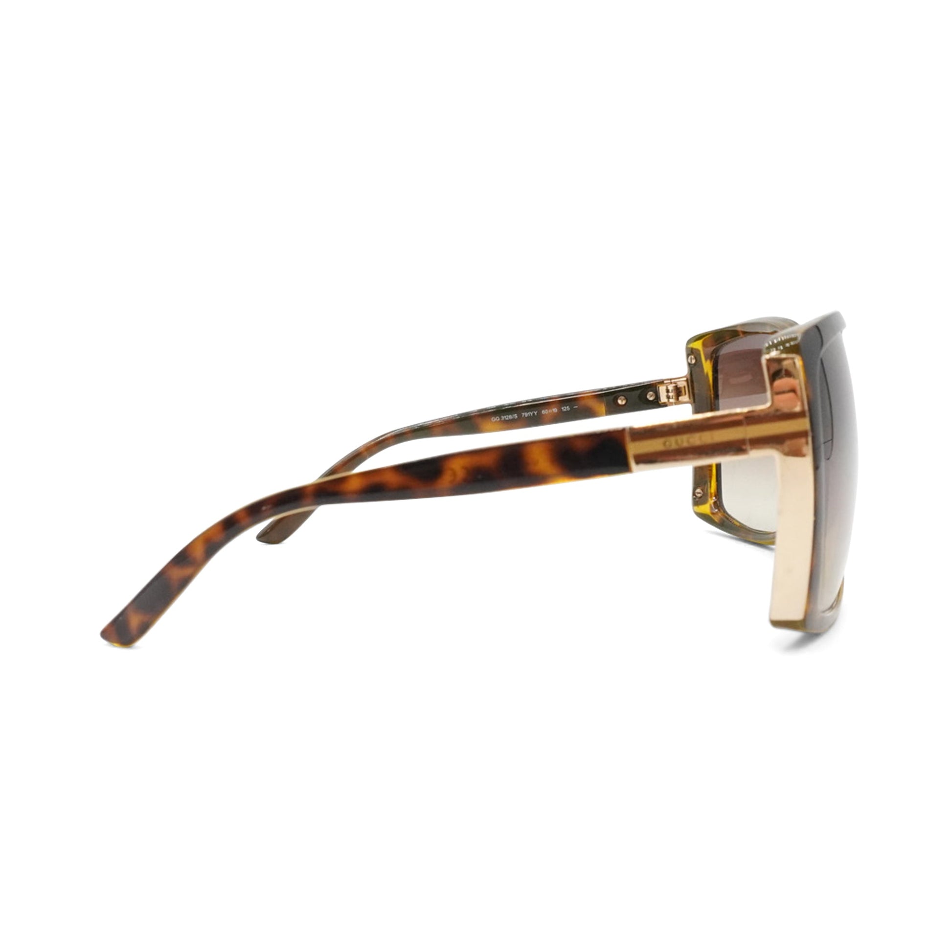 Gucci oversized sunglasses in brown tortoise acetate with brown lenses and a gold metal trim on the temples.