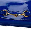 Gucci marries sleek sophistication and contemporary style with this gorgeous Patent Horsebit Clutch. Constructed with sleek patent leather, carefully embellished with gold horsebit and finished off in a bright and electrifying cobalt blue, this clutch is perfect for the evening. Its interior features an array of spacious storage compartments, presented in luxurious suede and woven fabric. Style with a risqué black dress and a pair of open toed sandals to serve this bag the justice it deserves.