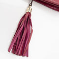 Condition Notes: Light creasing and scuffs throughout exterior. Light darkening and marks throughout tassel. Heavy surface scratches and light tarnishing to hardware. Heavy scuffs, imprints, and wear throughout interior flap. Light marks throughout interior.