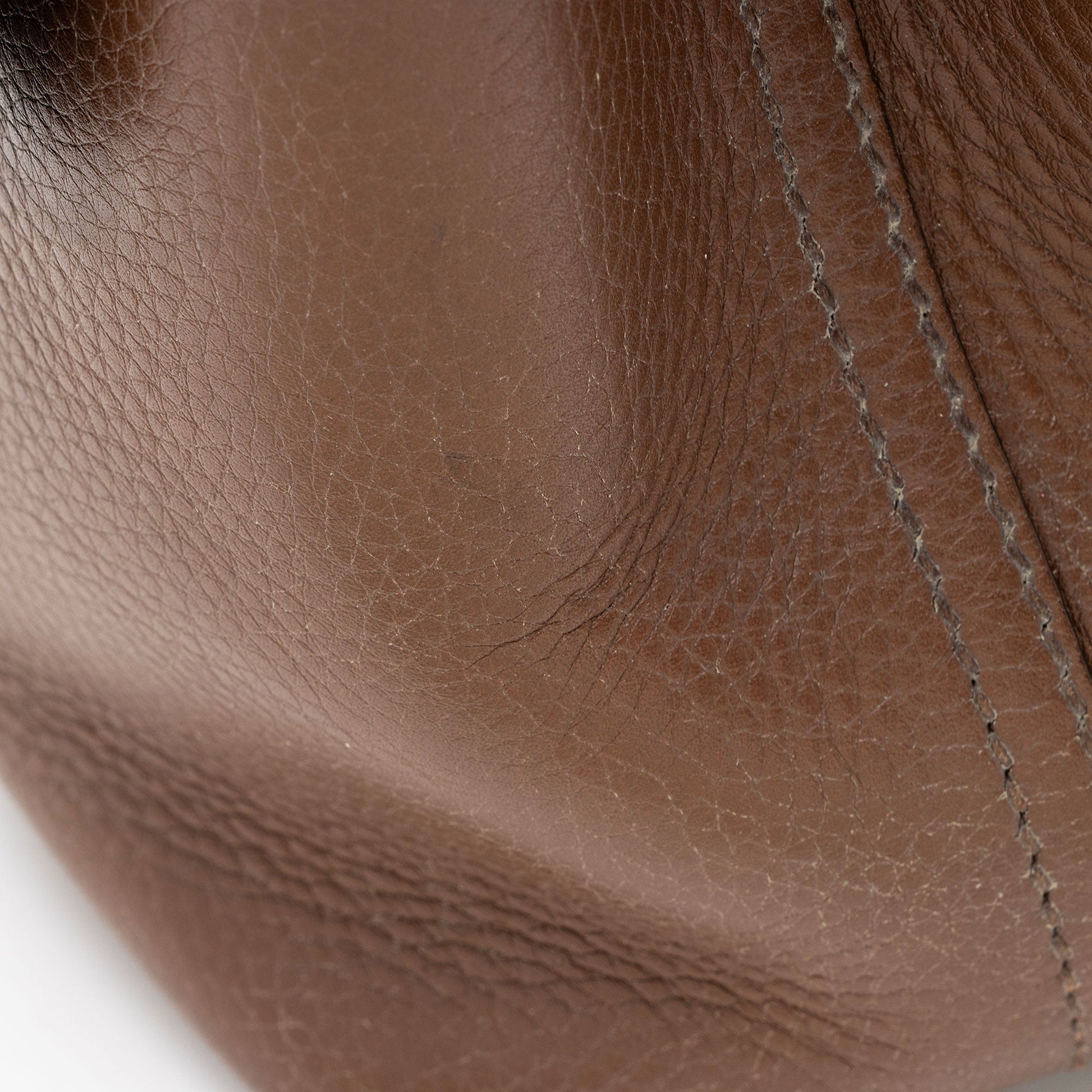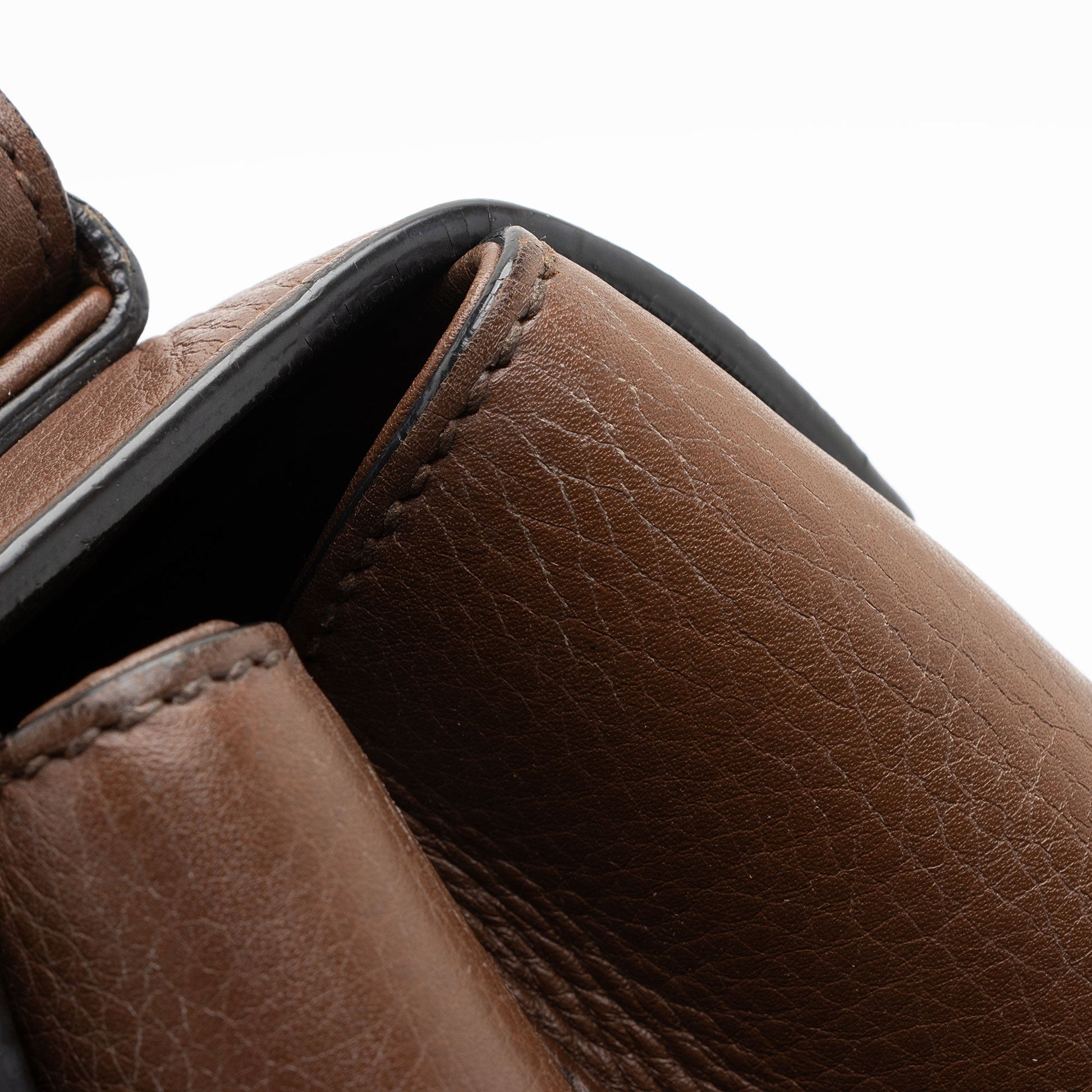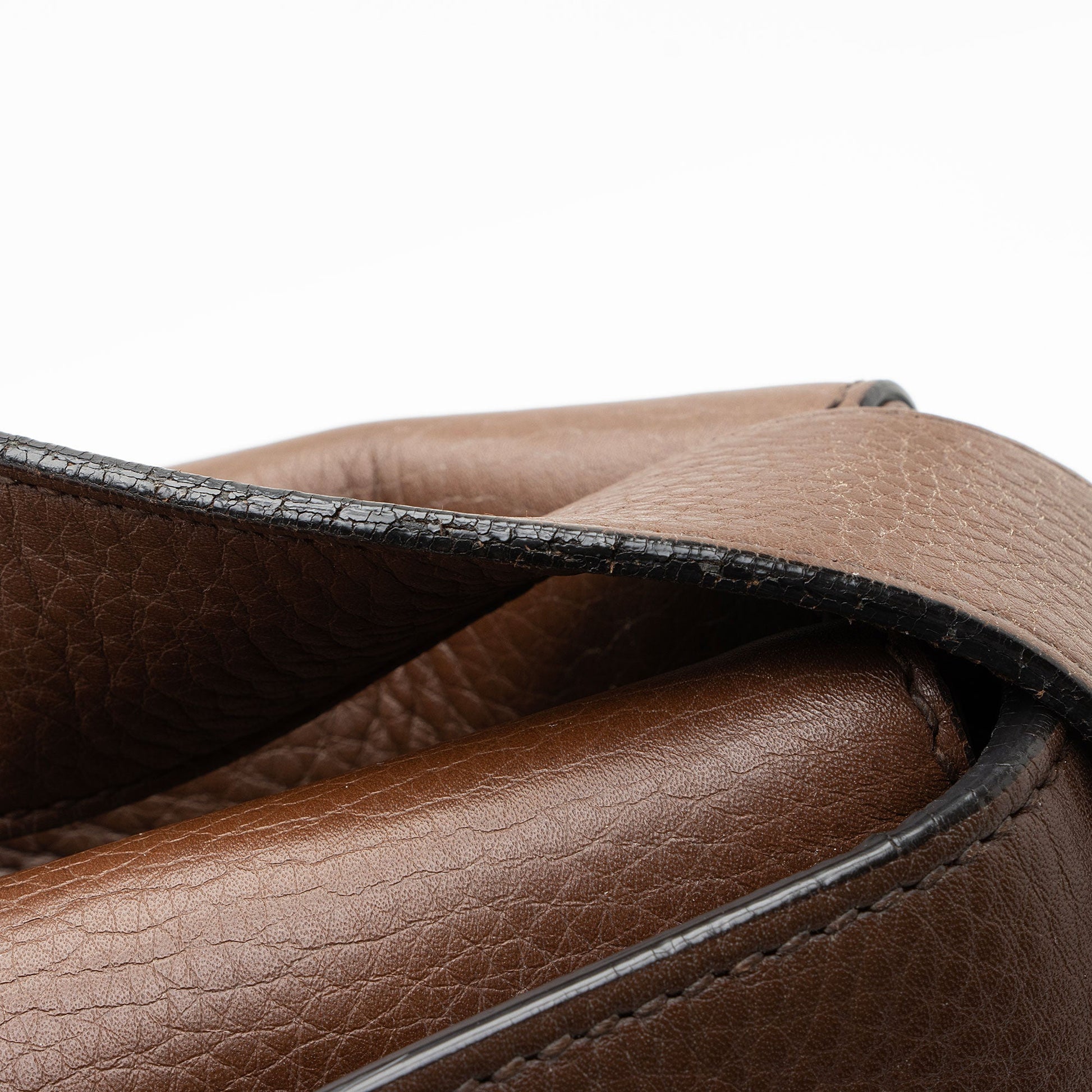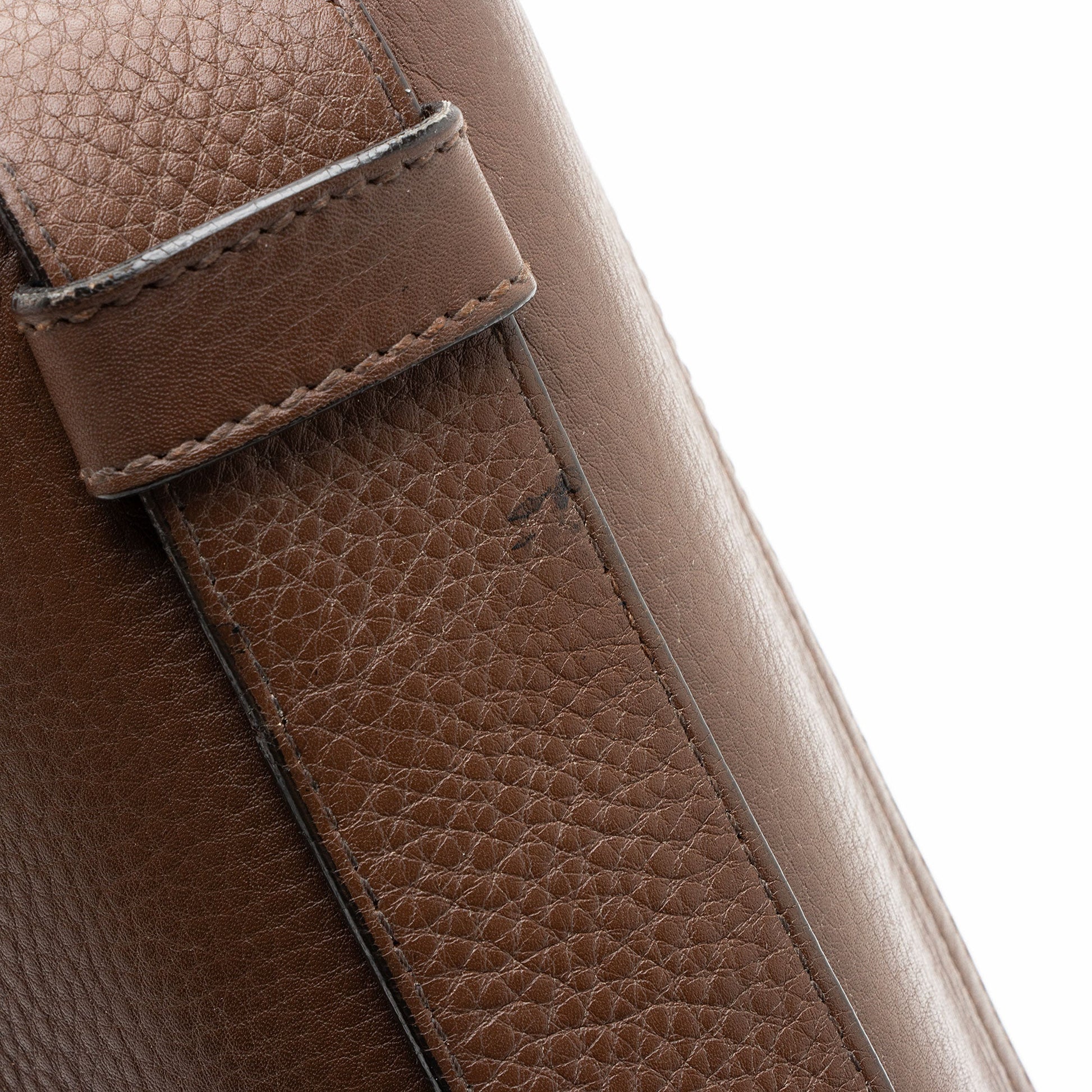 Condition Notes: Light loss of structure to exterior near bottom corners. Scuffs and wear throughout shoulder strap. Cracking and wear throughout shoulder strap casing. Darkening and wear to exterior bottom corners. Light surface scratches to hardware. Light marks and discoloration throughout interior.
