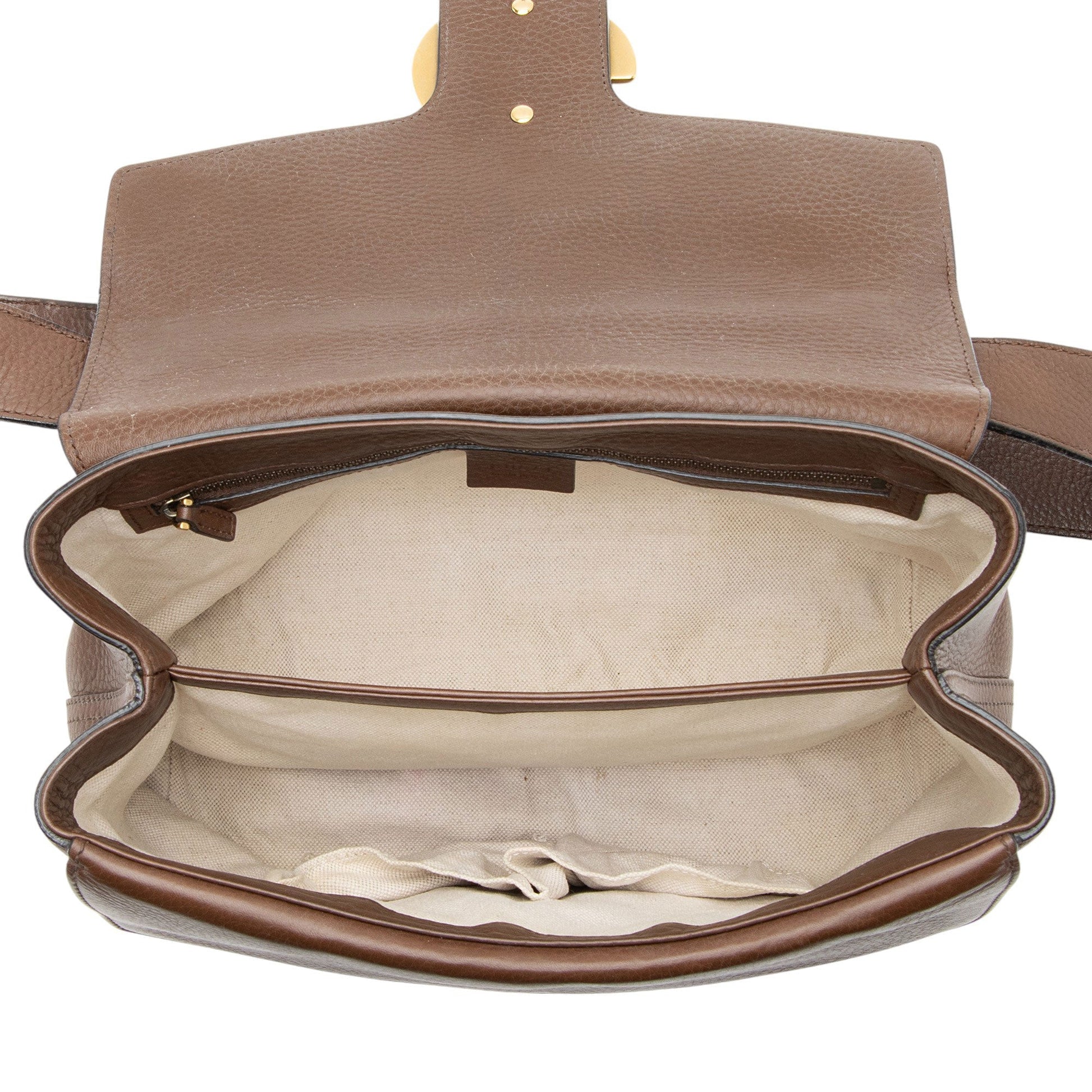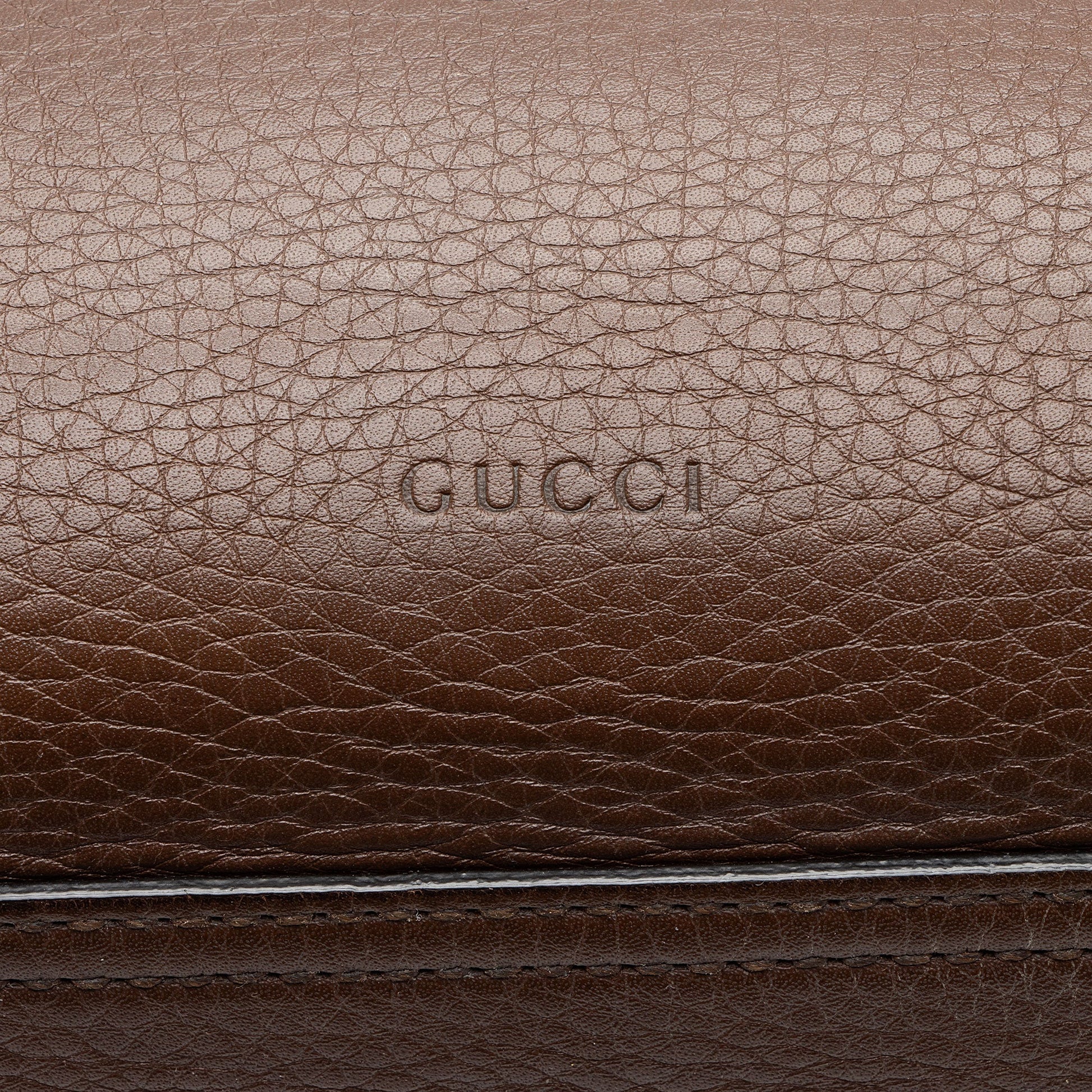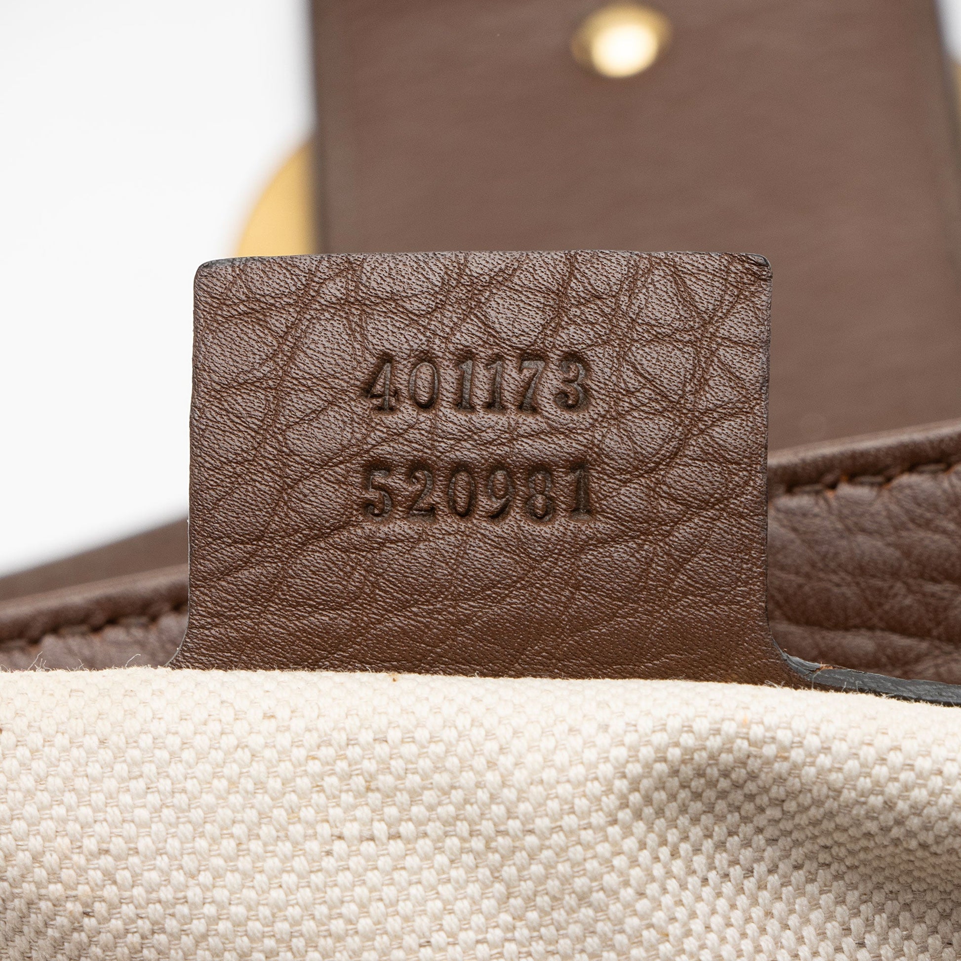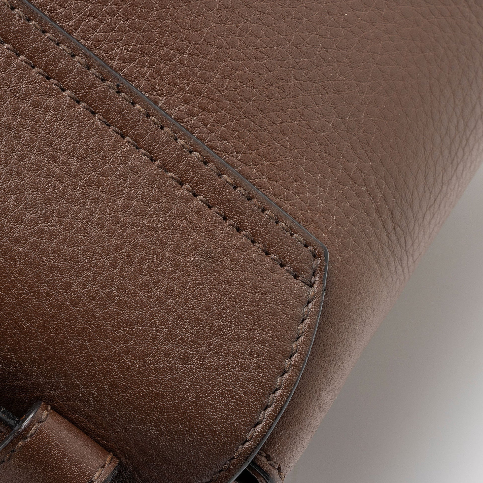 Condition Notes: Light loss of structure to exterior near bottom corners. Scuffs and wear throughout shoulder strap. Cracking and wear throughout shoulder strap casing. Darkening and wear to exterior bottom corners. Light surface scratches to hardware. Light marks and discoloration throughout interior.