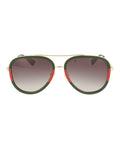 Gucci Pilot Urban Web Block Aviator Sunglasses, Gold/Green, One Size