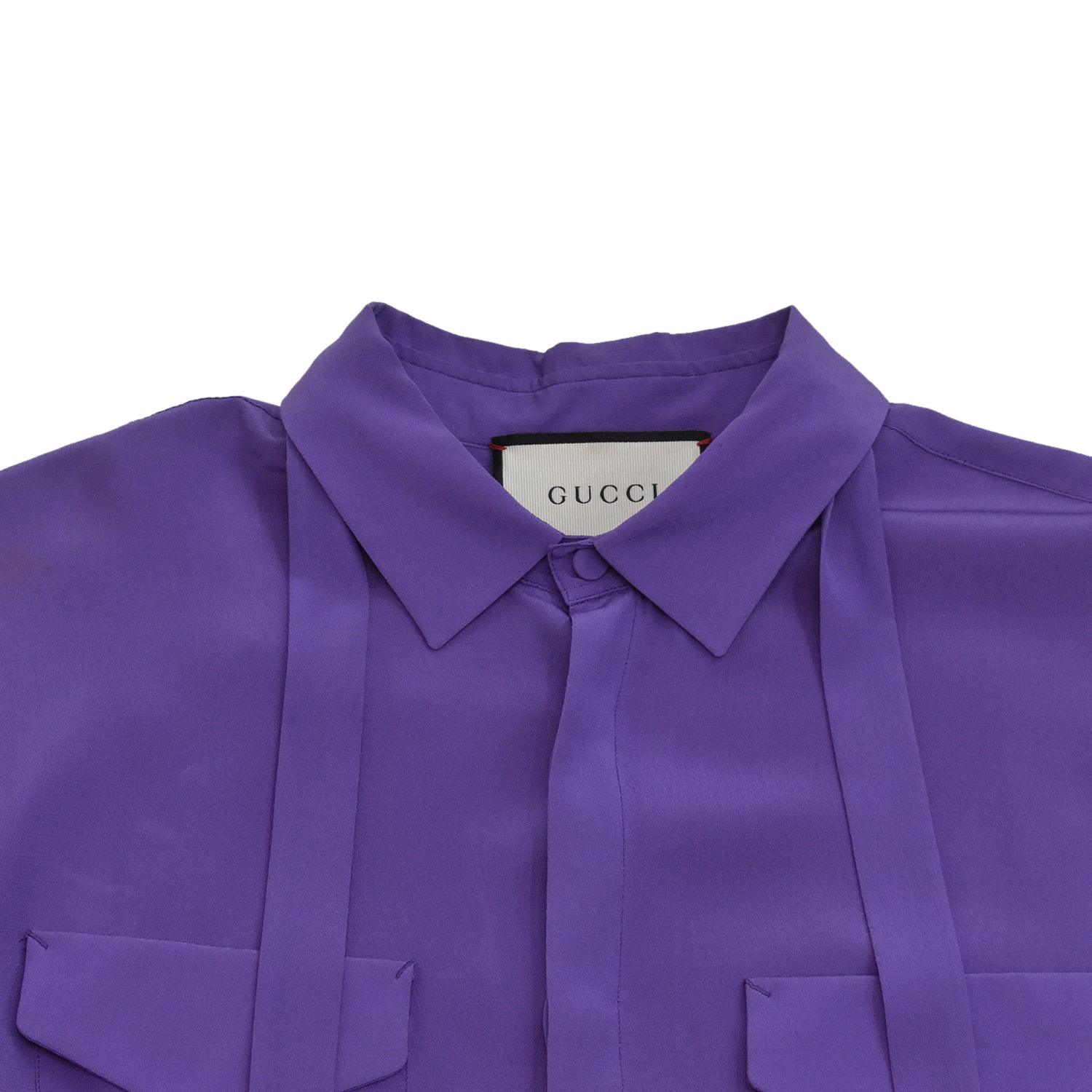 Gucci Blouse in purple silk with a necktie detail and breast pockets.