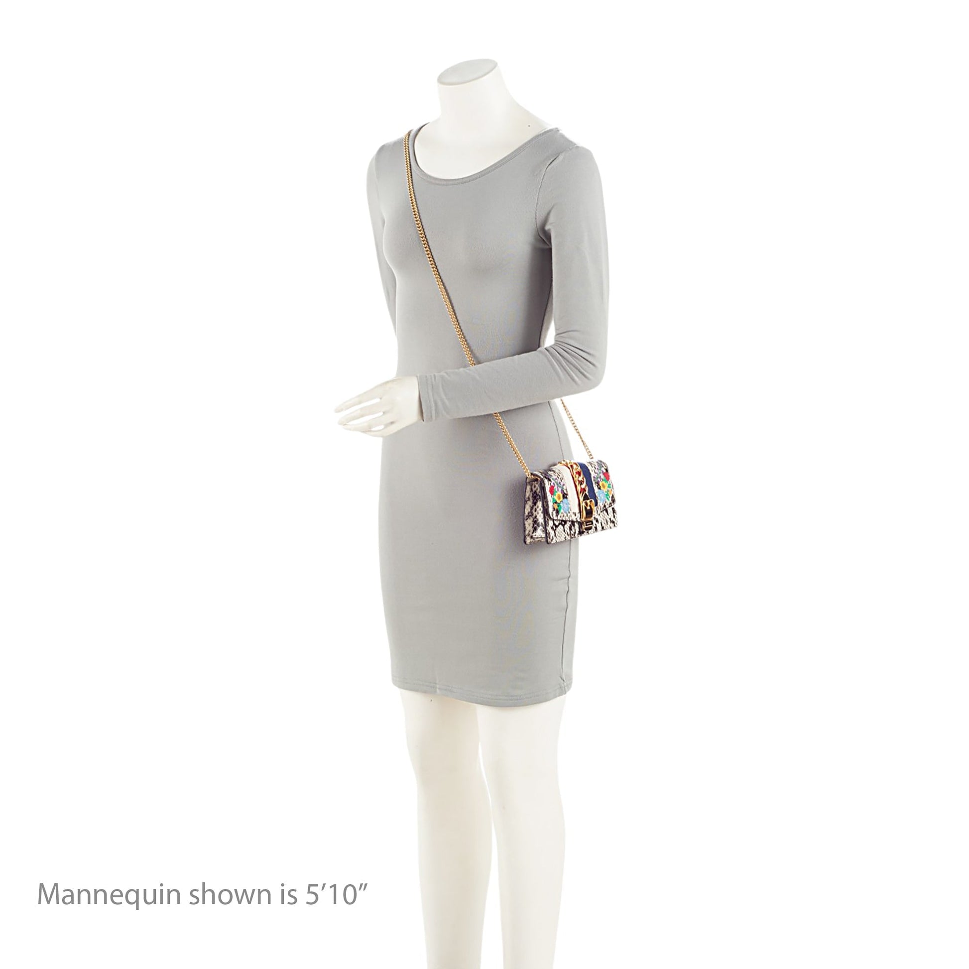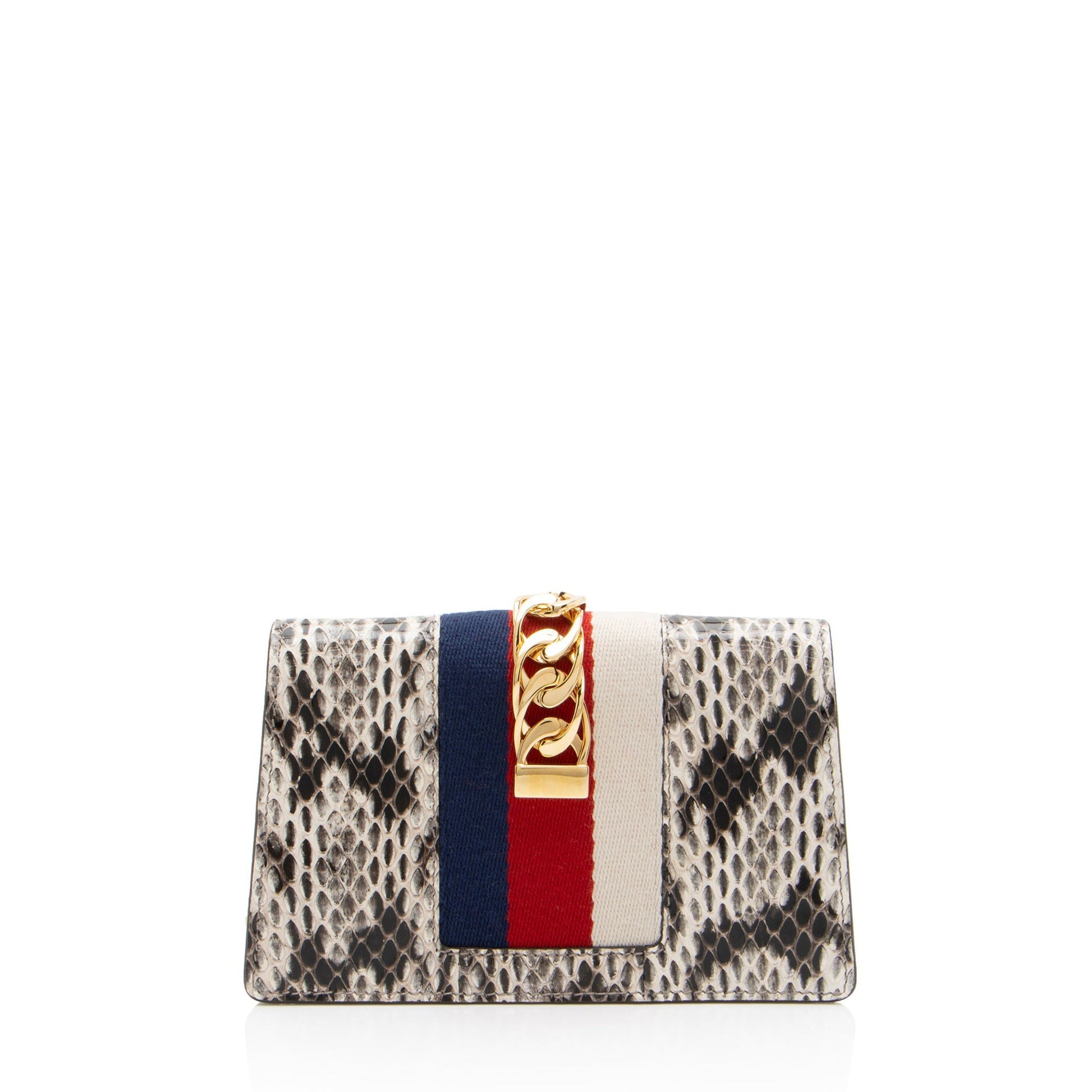Gucci Python Floral Embroidered Sylvie Super Mini Shoulder Bag (SHF-GgSM5V)