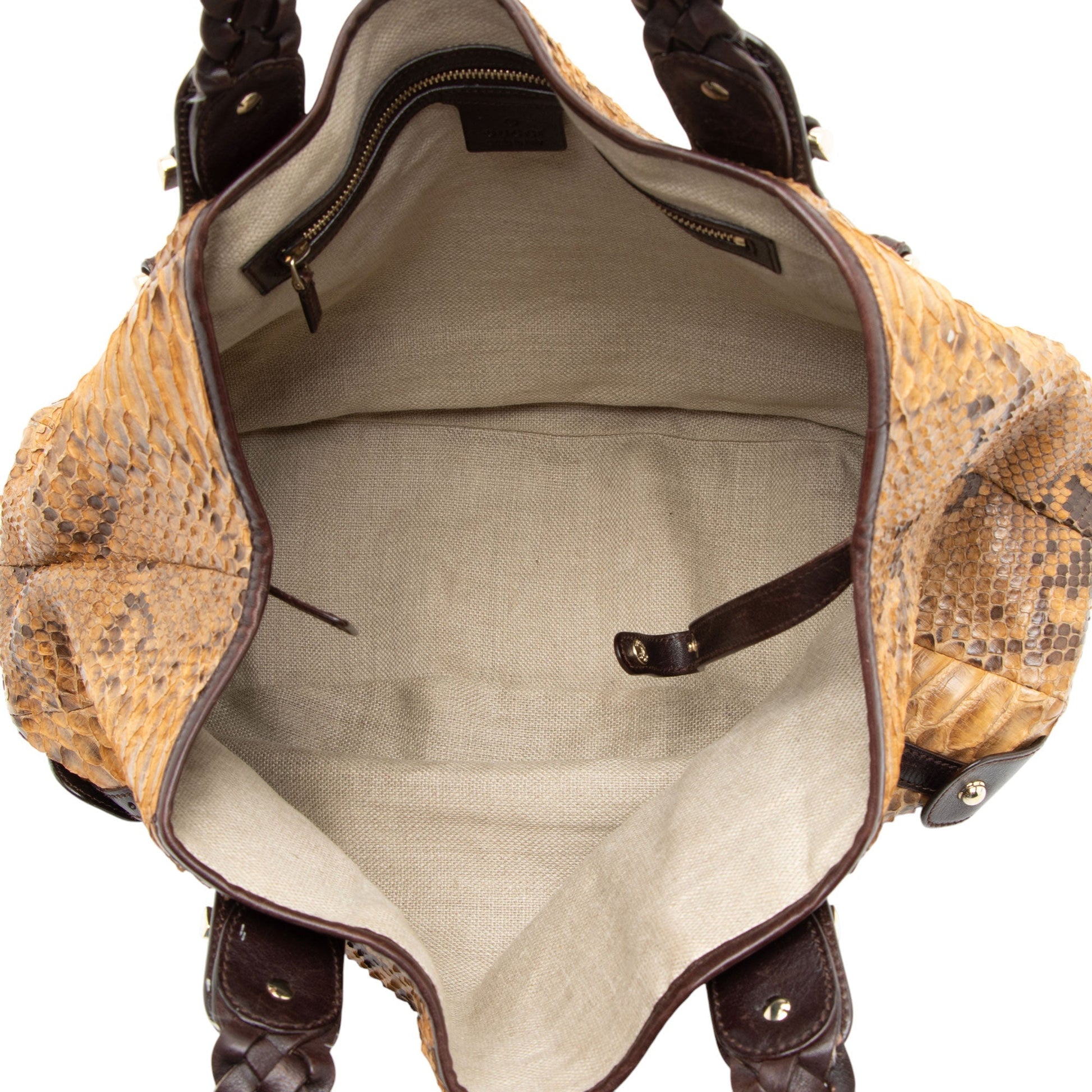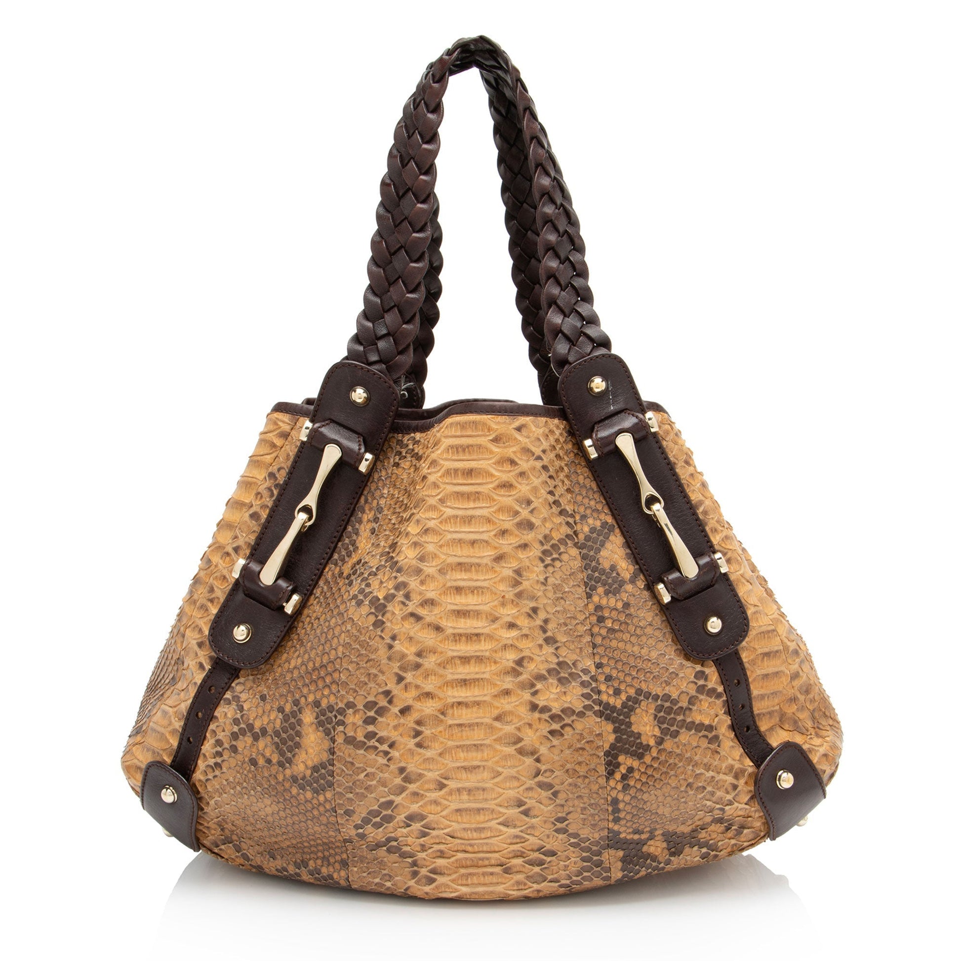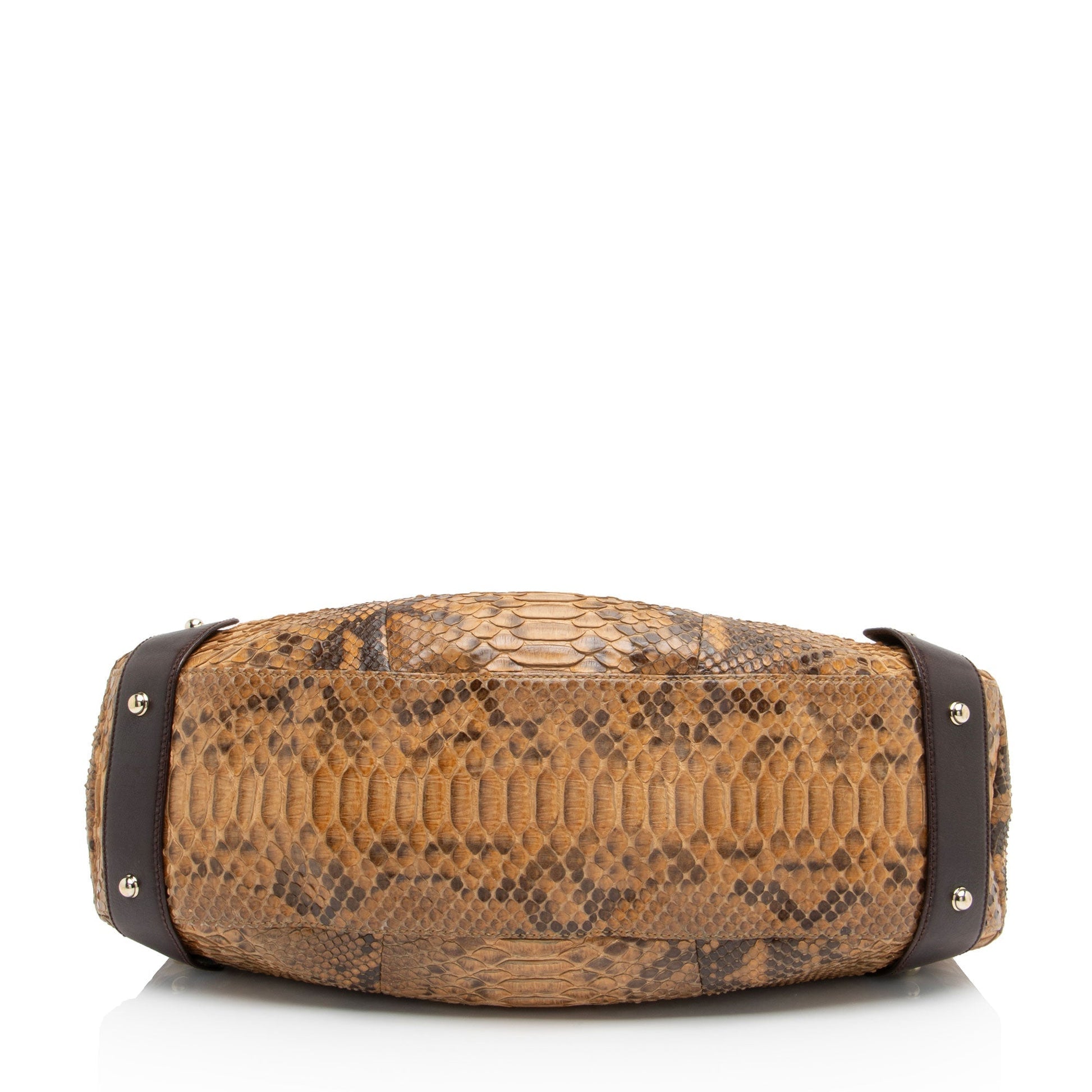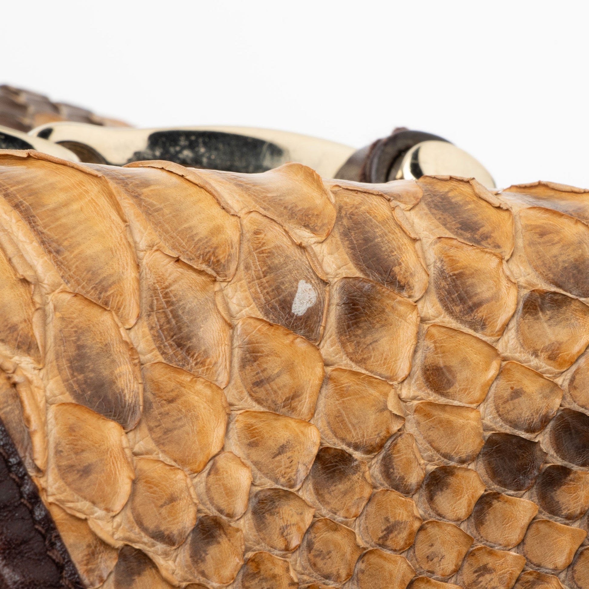 Condition Notes: Curling and light scuffs throughout exterior python. Light scuffs and creasing throughout exterior leather trim and handles. Light fraying throughout handle casing. Surface scratches to hardware. Light marks to interior. Please note: Python cannot be sold or shipped to California.