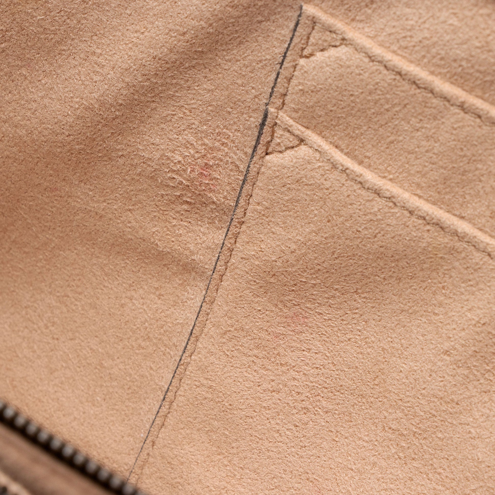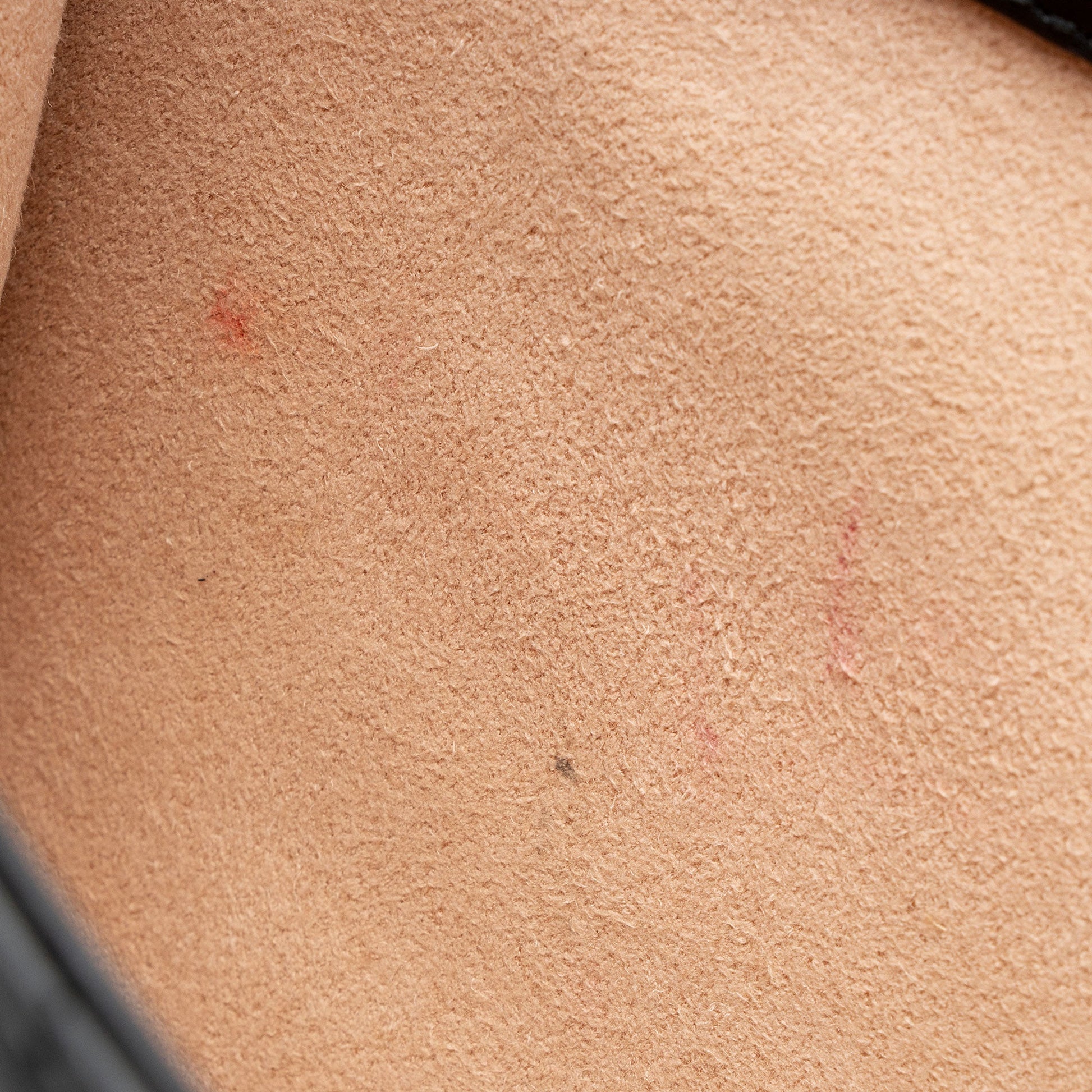 Condition Notes: Visible marks and darkening throughout exterior. Light surface scratches to hardware. Moderate scuffs and wear throughout interior flap. Light marks and darkening throughout interior.